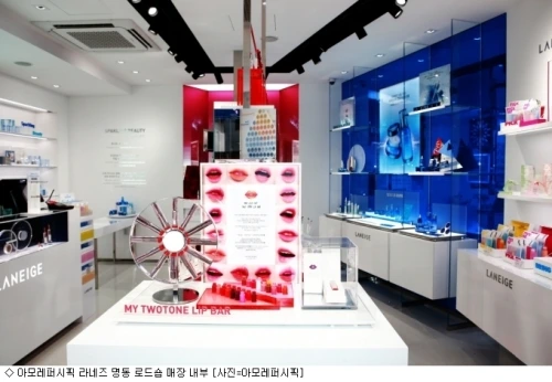 아시는 분들은 아시겠지만 아모레퍼시픽은 1945년 '태평양화학공업사'로 출발했다. '아모레퍼시픽'이라는 이름을 쓰게 된 건 2006년. 방문판매를 하던 그 때 그 시절 느낌이 물씬 나는 레트로 스타일 디자인을 그대로 가져왔다. 요즘 뉴트로 트렌드에 잘 어울리는 힙한 디자인을 매장 곳곳에서 확인할 수 있다.