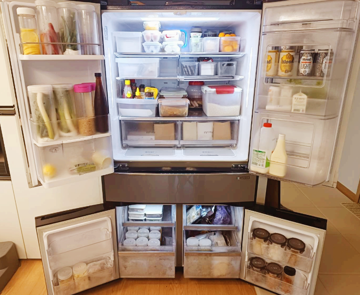 내가 가장 효과를 본 건 냉장고 정리였다. 이사 올 때 주방 쪽 일해 주시는 분께 혼날 정도로 냉장고 속은 전쟁터였는데 감히 도전장을 내밀었다. 냉장고 대청소를 하기로 한 것이다. 아이가 유치원 가있는 오전에 주로 하다 보니 거의 2주가 걸렸다. 냉장고 정리 첫 단계는 비우는 것이었는데, 비우는데만 일주일이 걸린 듯싶다. 냉장고 정리하면서 역시 '채움'보다 '비움'이 더 어렵다는 사실도 다시금 깨달았다. 비우고난 후에는 트레이를 하나씩 분리해서 청소해야 한다. 몸을 가장 많이 썼던 기억이 난다. 화장실로 옮겨가서 물로 깨끗이 씻고 세워서 말리고 다시 냉장고에 끼워 맞추고 나름 신체운동 강도가 센 작업이었다. 마지막으로 채워 넣을 곳을 공간에 맞는 수납통을 맞추어 채워 넣으면 된다.