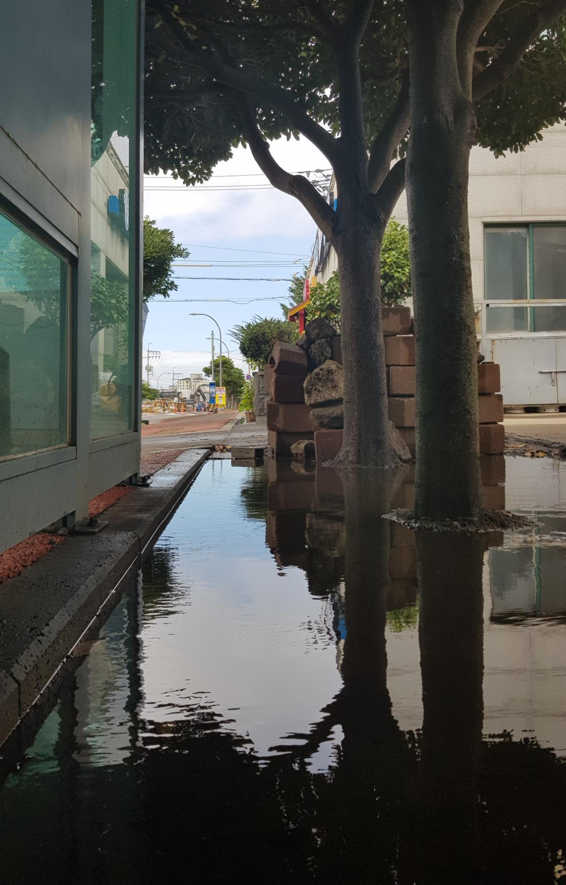 비가 많이 내린 어느날, 제주시 중앙성당 앞