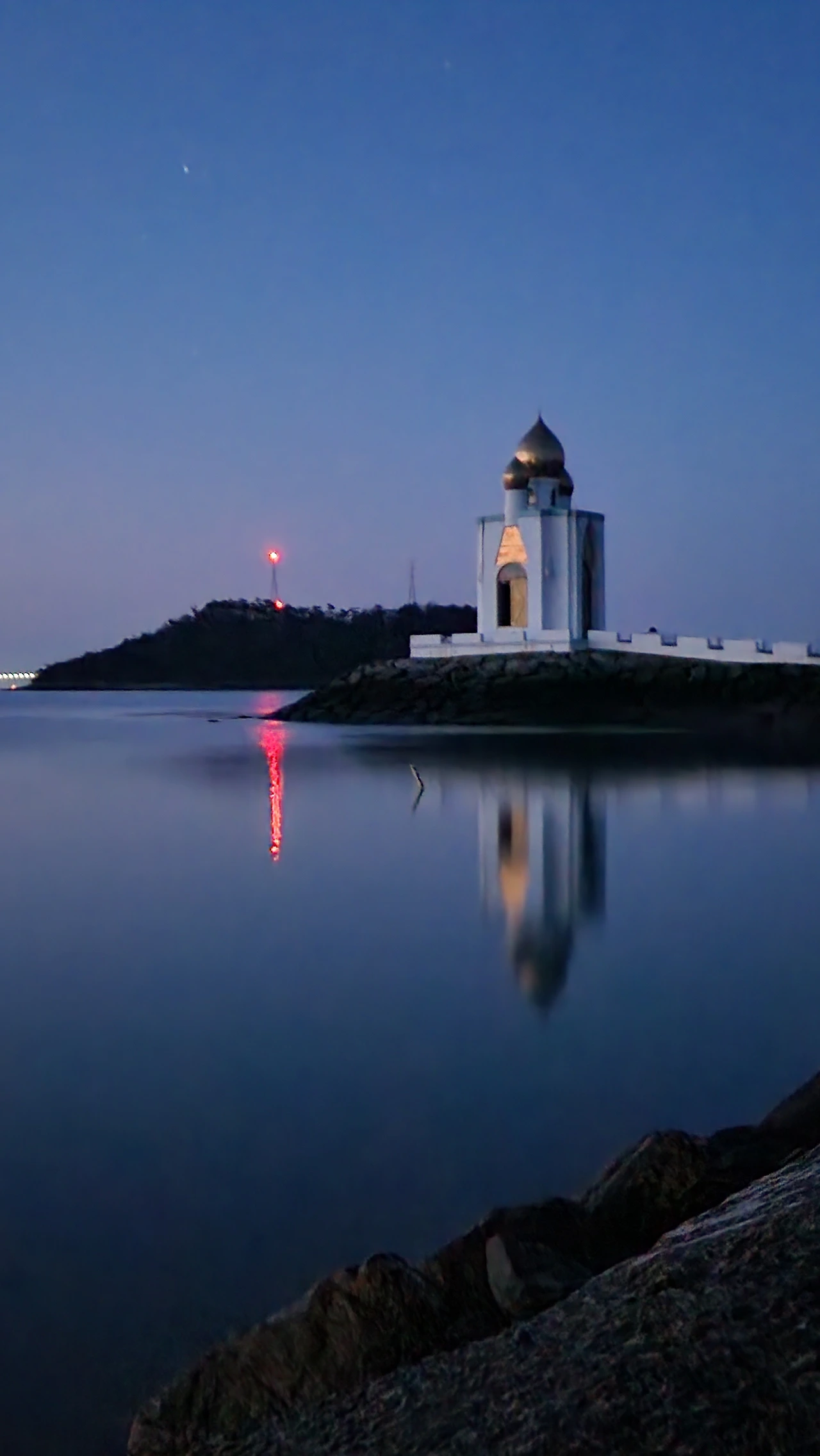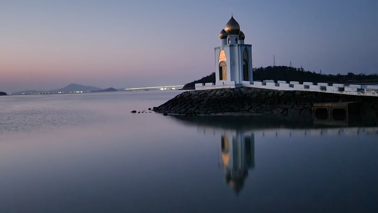 뱃길이 끊겨 일박 후 새벽에 숙소 앞에서