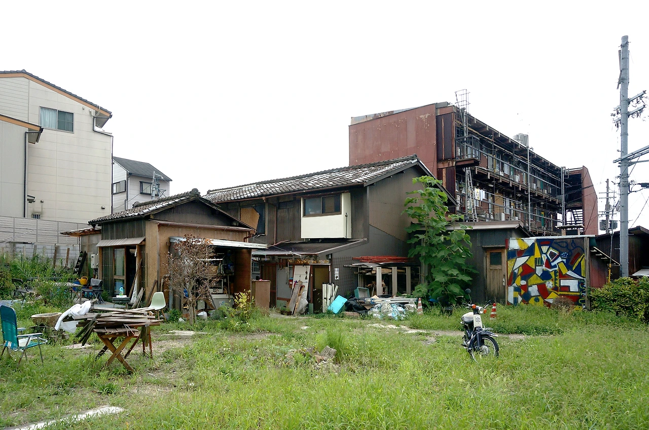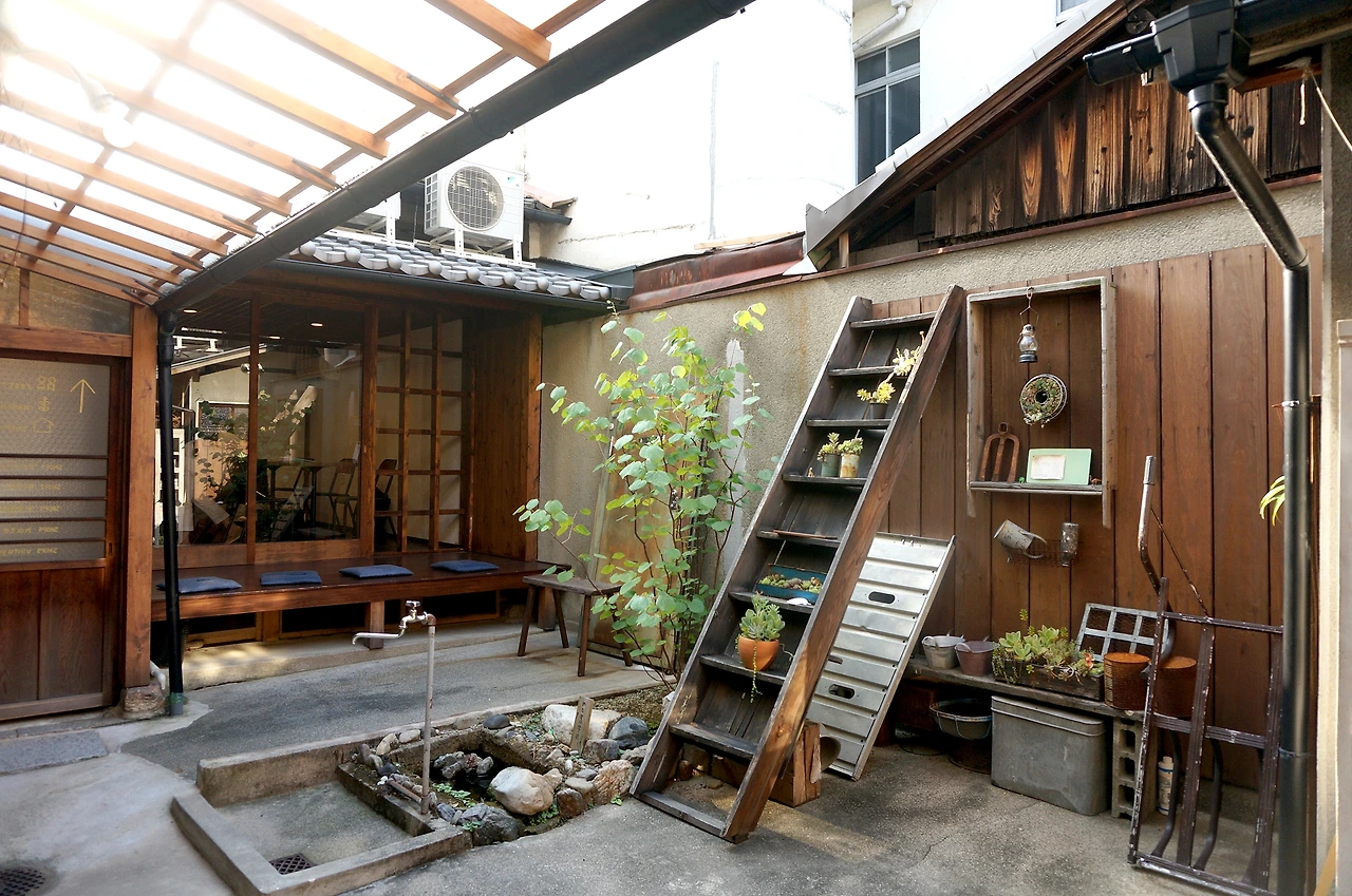 혼마치 에스코라는 1940년대에 지어진 교토 특유의 나가야*(長屋)가 연속된 필지의 안쪽에 자리 잡고 있다. 도로에서 바로 접근할 수 없고, 골목을 따라 들어온 뒤 한 번 더 안쪽으로 진입해야 공동의 마당과 커뮤니티 공간이 열린다. 이러한 진입 구조는 불특정 다수를 위한 장소라기보다 관계를 전제로 한 생활공간임을 암시한다.