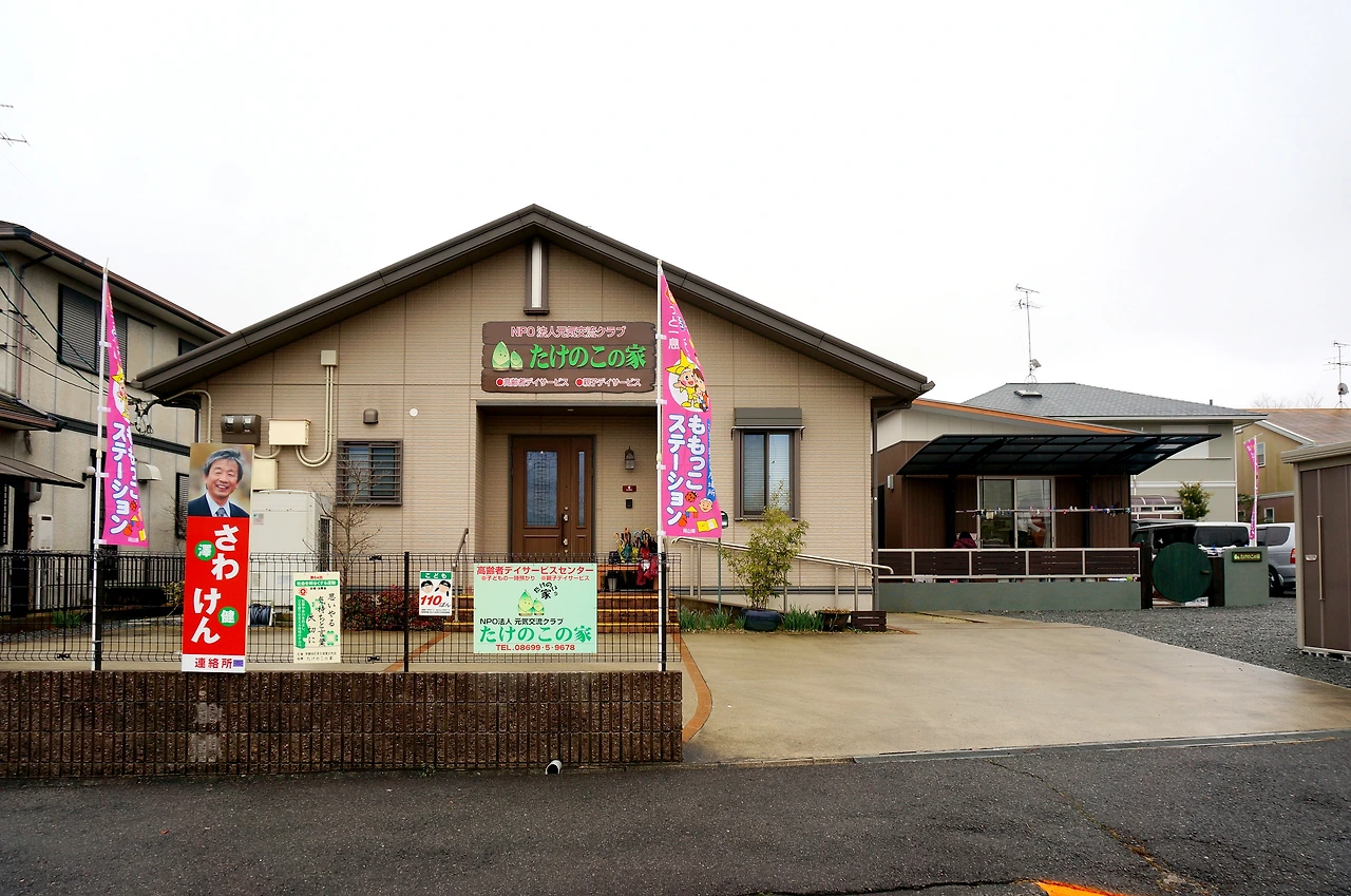 다케노코노 이에는 오카야마현 아카이와시 사쿠라가오카 뉴타운(岡山県 赤磐市 桜が丘 New Town)에 위치한 노유복합형 커뮤니티 공간이다. 사쿠라가오카는 약 35년 전 대규모로 조성된 단독주택 중심의 뉴타운으로, 급격한 고령화보다는 세대 간 관계 단절과 일상의 고립이 점차 문제로 드러난 지역이다. 이곳은 이러한 환경 속에서 고령자 데이서비스센터와 모자 데이서비스((親子デイサービス) 센터를 하나의 건물 안에 통합해, 통합케어로써 세대 간 일상의 접점을 회복하기 위한 시도로 출발했다.