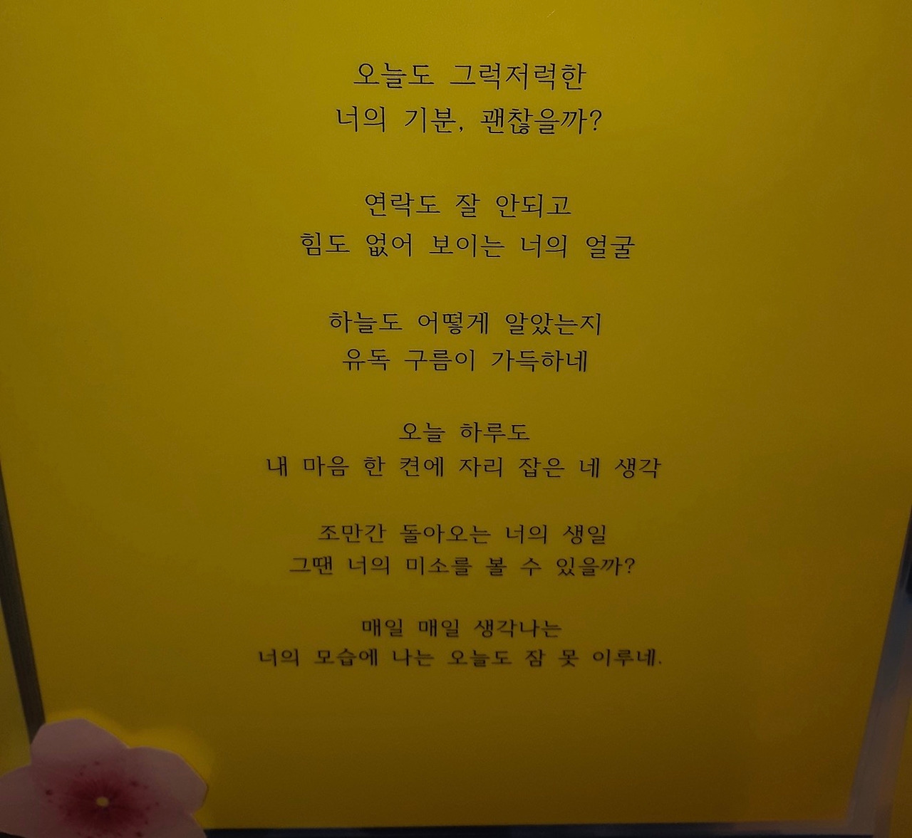 잔잔한 노래가 흘러나오고, 밖의 풍경도 글을 쓰기에 다양한 감정을 생각하기에 좋은 분위기였죠.