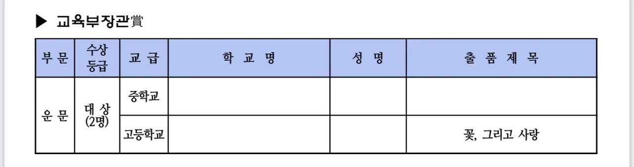 1등은 교육부 수상, 2등 교육감 수상이었지만