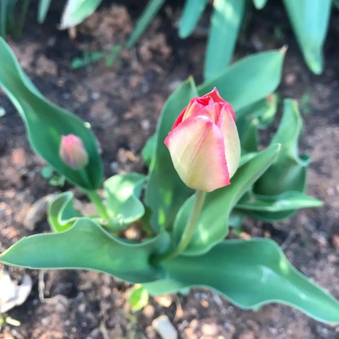 방금 줄기 자른 꽃을 들고 찾아와
