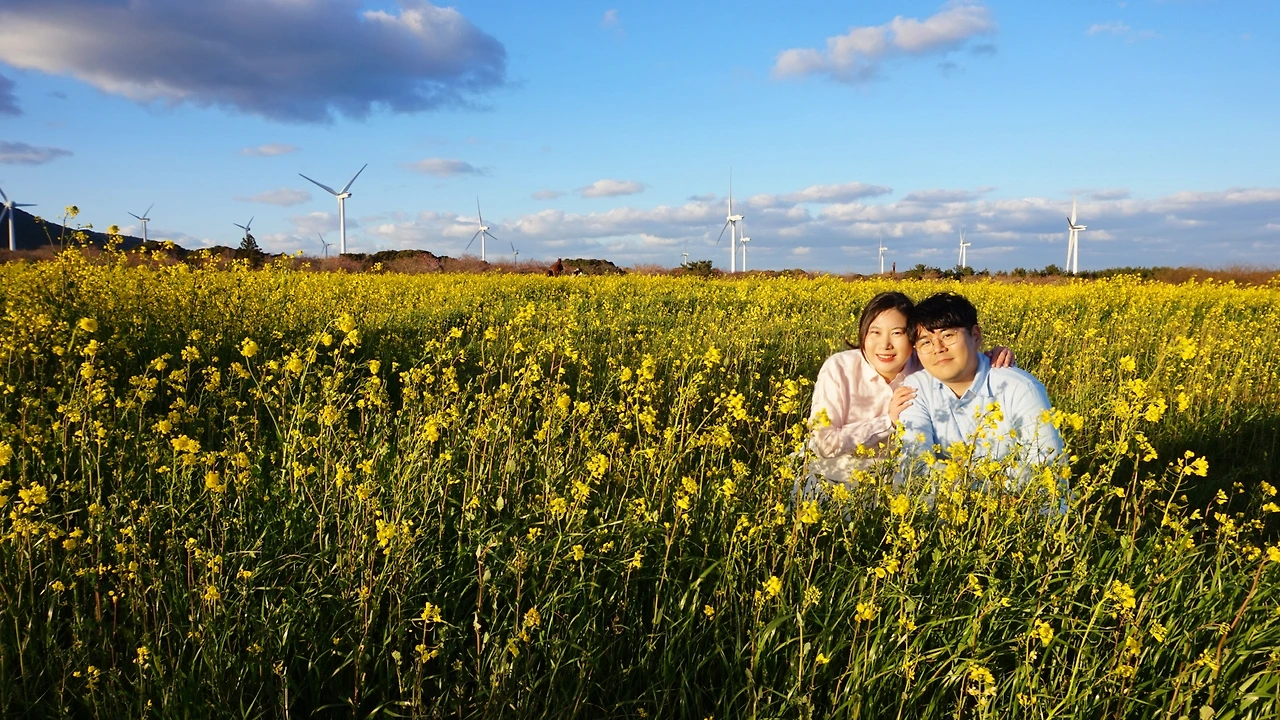 "제주도 하면 '유채꽃밭'이지~. 우리 유채꽃밭에서는 더 예쁜 사진을 찍을 수 있을 거야."