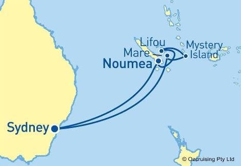 크루즈의 항해 코스는 시드니에서 출발해서 바다에서 3일간 항해를 하다가 바누아투 섬 1군데, 뉴칼레도니아 섬 3군데를 둘러보고 다시 2일간 항해를 하면서 돌아오는 코스였다.