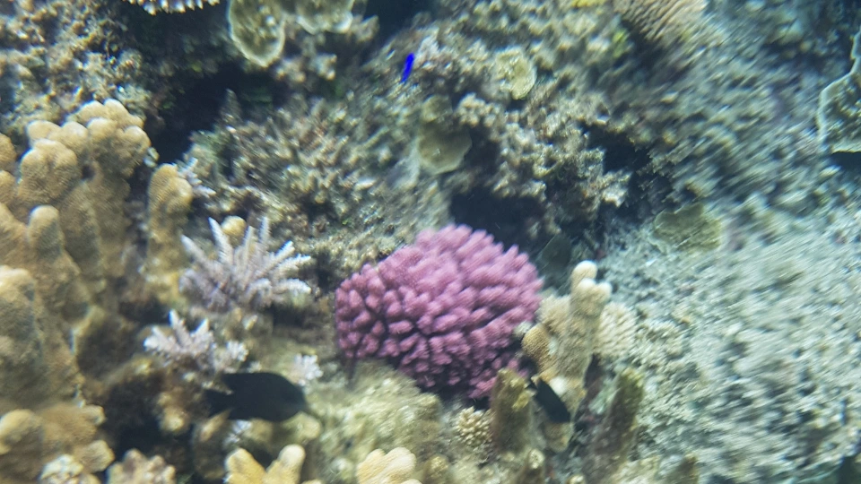 나도 여러 나라에서 스노클링을 많이 해보았지만 이렇게 투명한 물에서 보랏빛, 붉은빛, 노랑빛의 다양한 색을 자랑하는 산호 군락은 처음 보는 것 같았다.