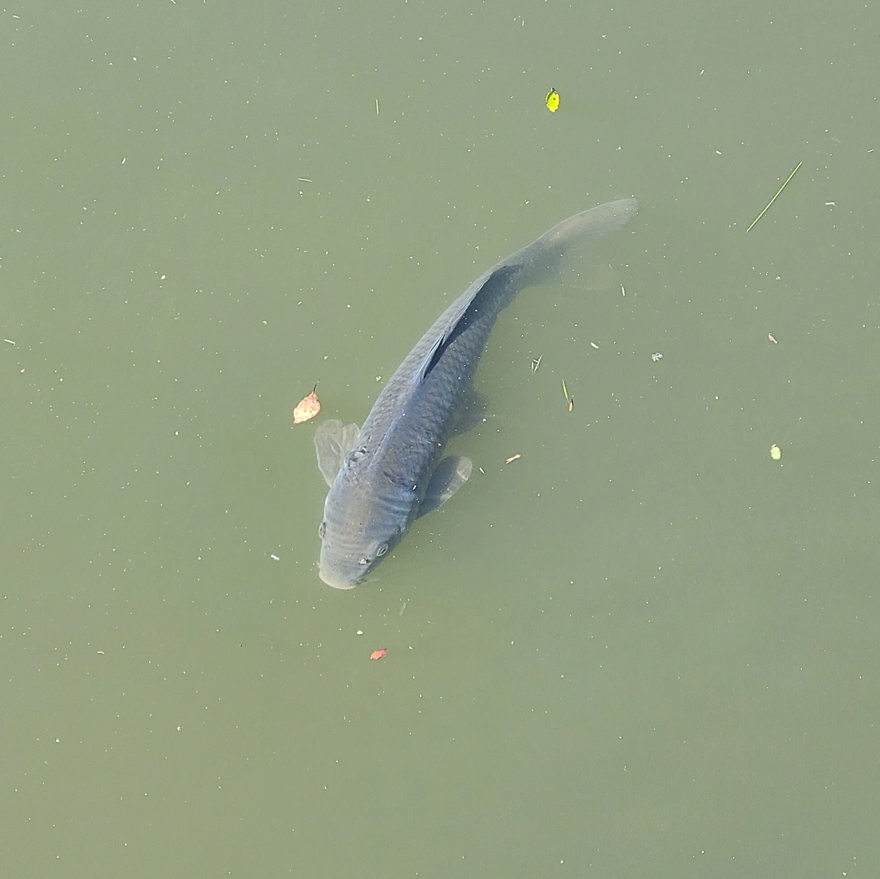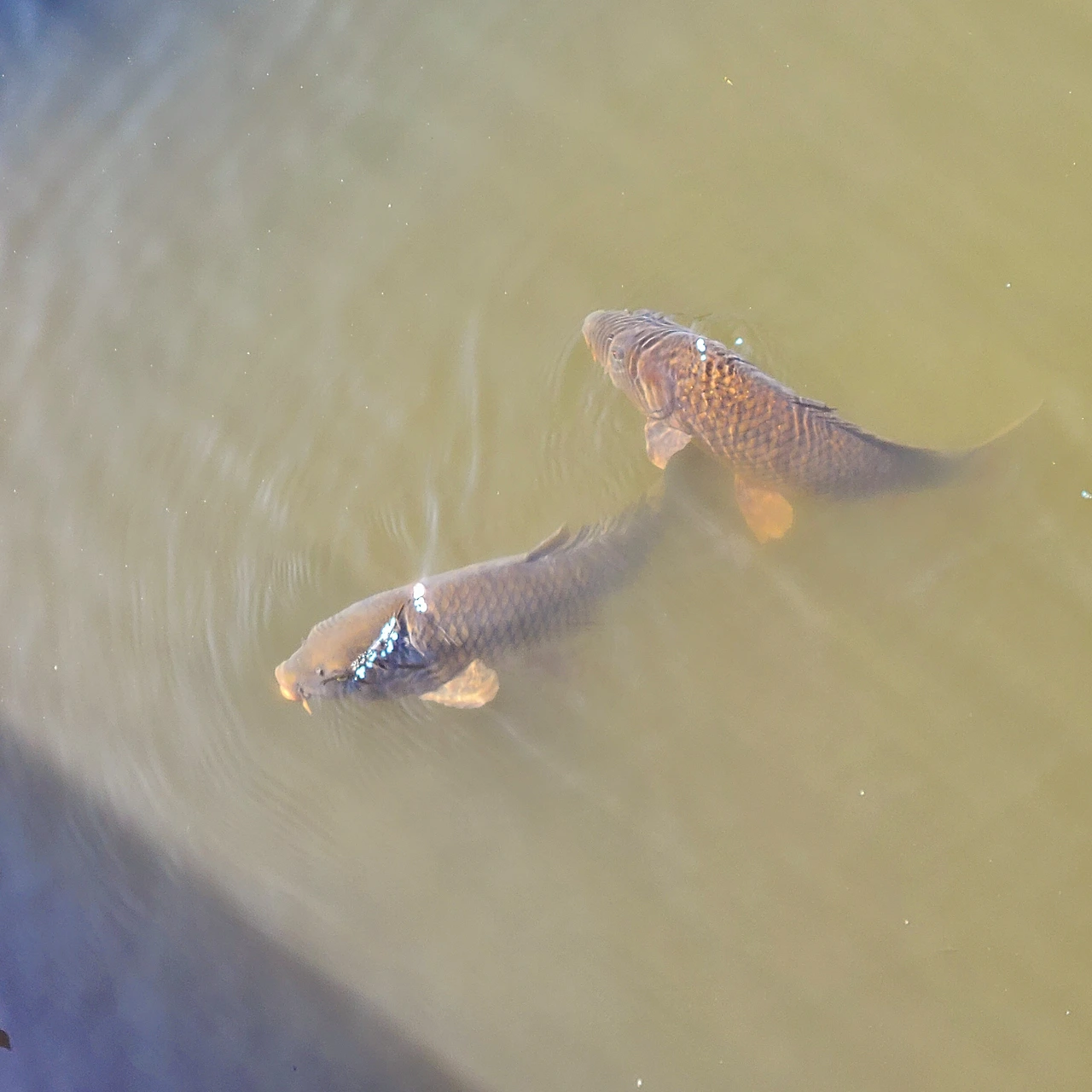 호숫가에는 큰 잉어들이 헤엄치고 있었다.