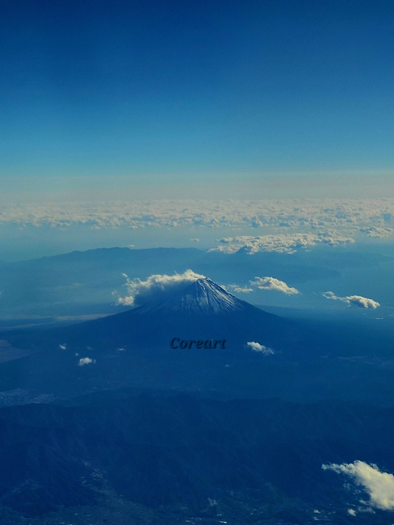 마치 화산이 분화되는 듯 구름이 지나가는 후지산 정상의 모습. 맑은 날 운이 좋게