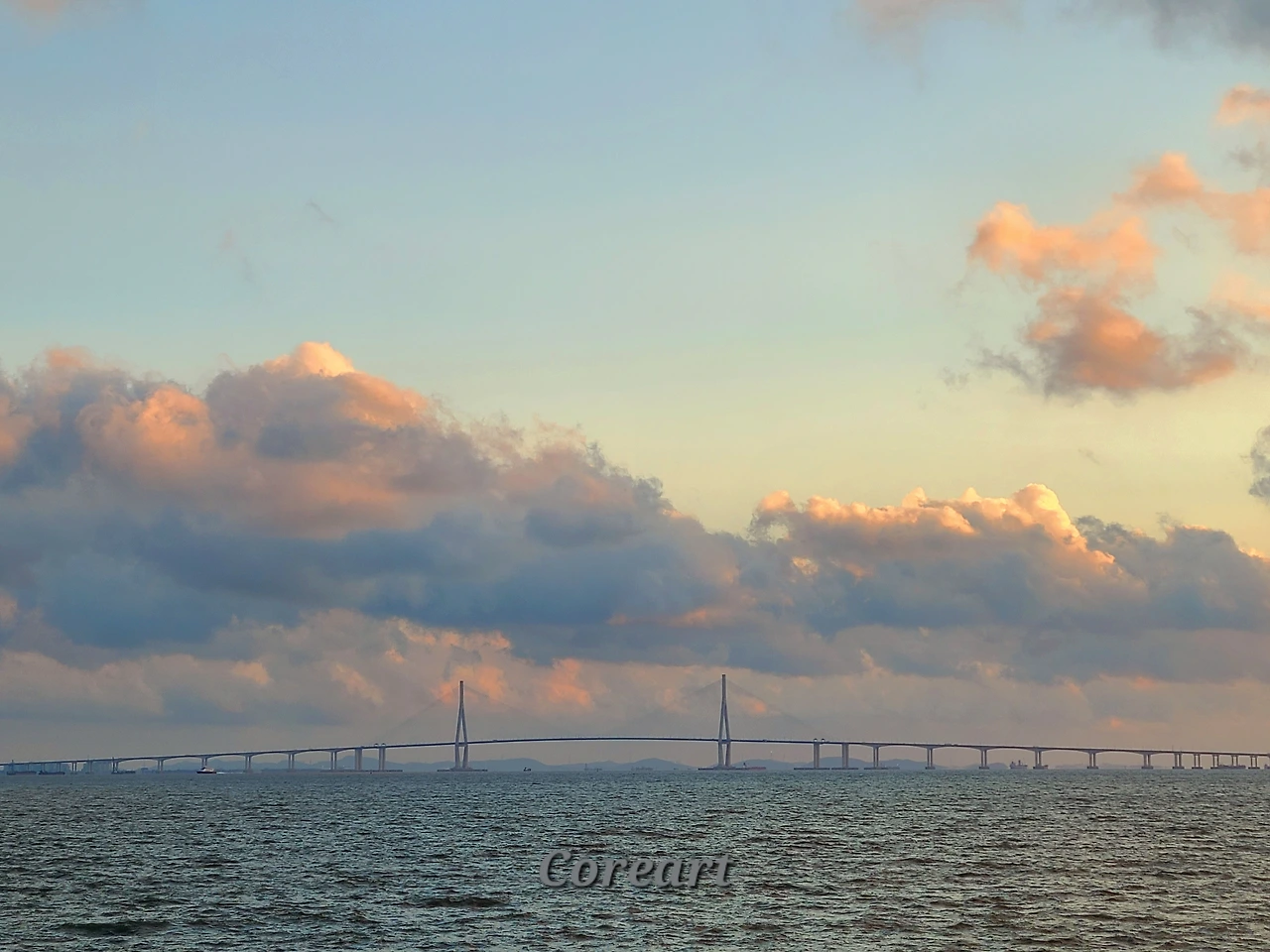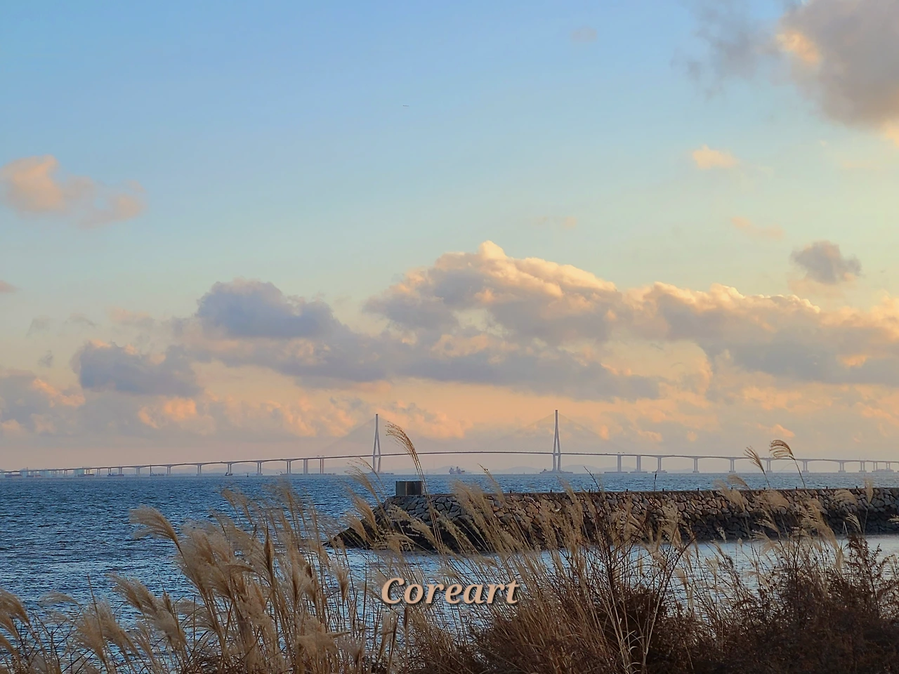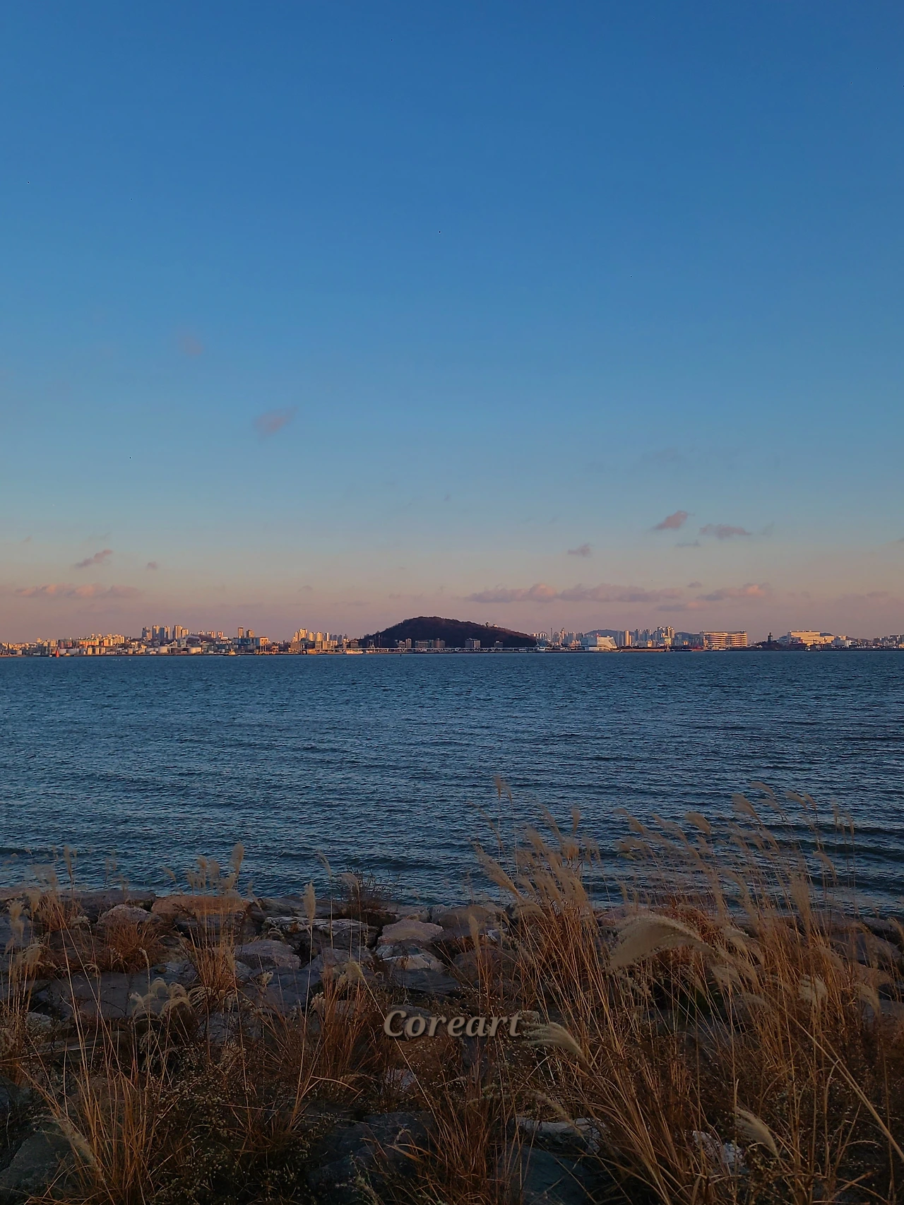 맑은 하늘을 보며 걸음을 옮기다 보니, 어느새 해가 지기 시작했다. 푸른 하늘에 다른 빛이 섞이는 순간, 눈앞의 풍경이 한 폭의 그림 같다는 생각이 들었다. 바닷바람을 맞아 갈대는 하염없이 흔들리고 있었다.