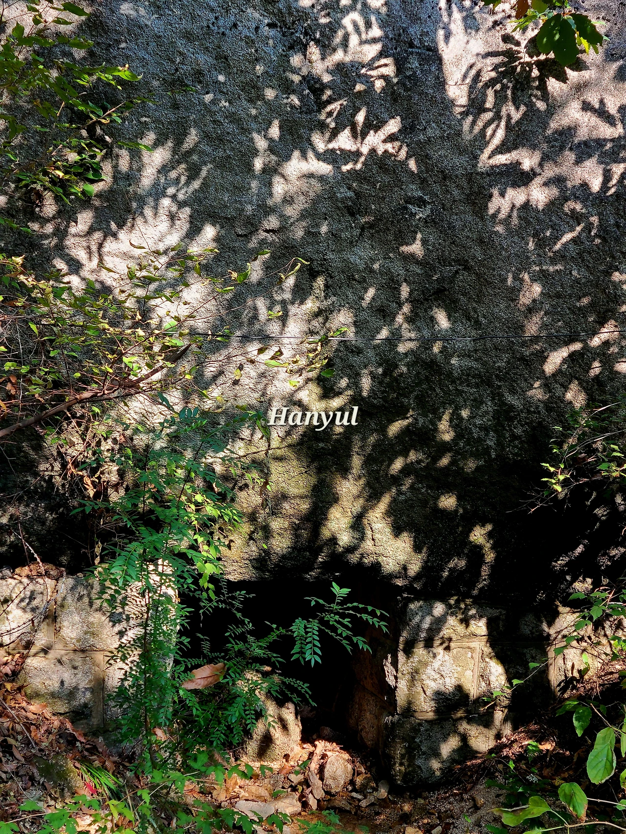 첫 번째 사진은 인왕산을 하산하던 도중에 발견한 큰 바위이다. 예전에 요새와 같은 건물로 사용되었는지 동굴을 닮은 입구가 보인다. 초가을이지만, 지금처럼 초록이 무성한 시기에 찍었던 사진. 바위 위에는 나뭇잎들과 나무의 그림자가 드리운다. 여름에서 가을로 지나가는 길목을 초록빛 식물들로 둘러싸인 바위가 막고 있었다.