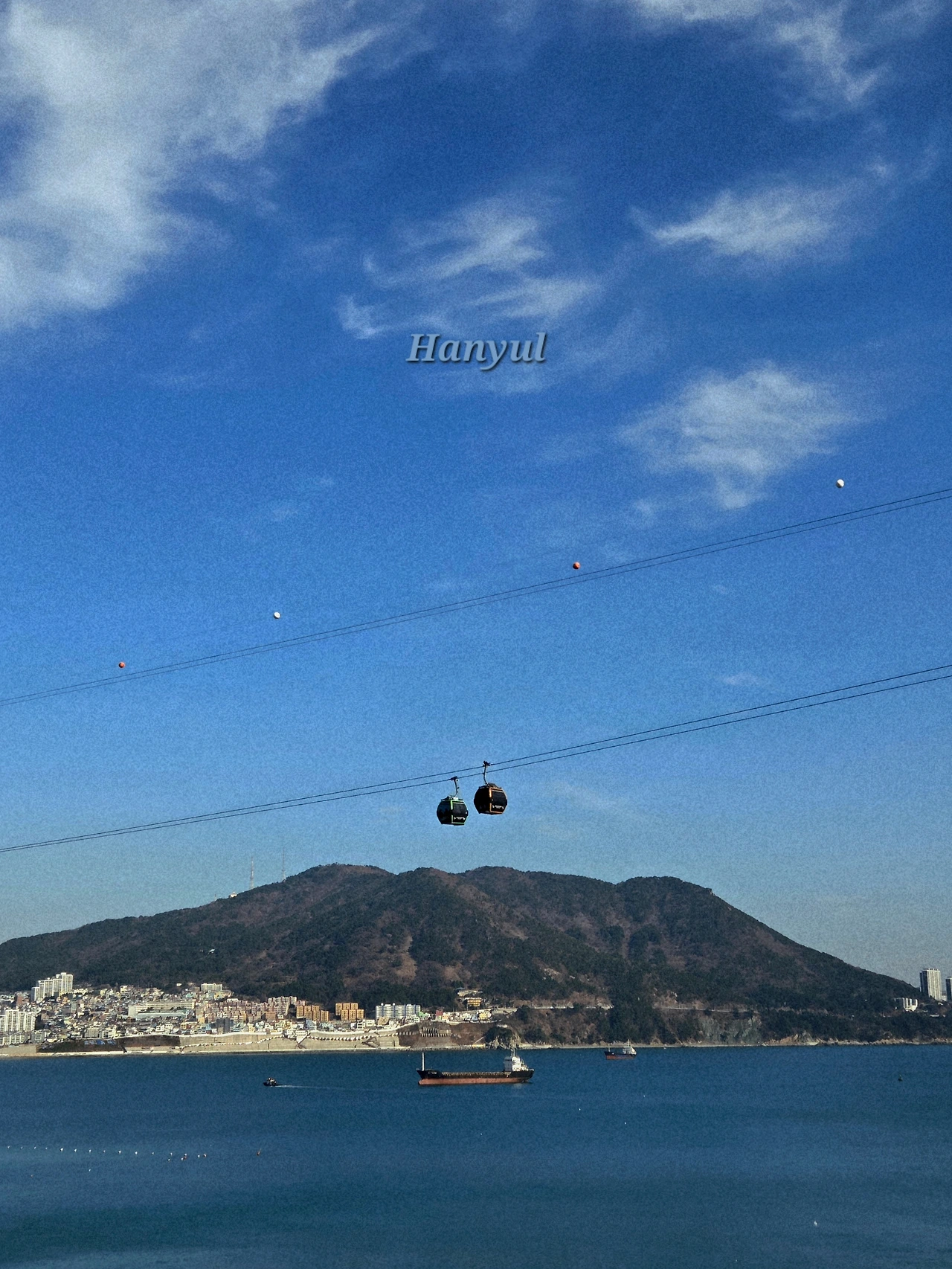 재잘거리듯 일렁이는 파도. 약하게 불어오는 바람을 뒤로 안고, 눈앞에 맺힌 풍경을 바라본다. 사진 한가운데 서로 교차하는 해상케이블카. 케이블카 아래에는 바다 위에 떠 있는 몇 척의 화물선이 보인다. 산등성이 아래 펼쳐진 바닷가 마을과 자그마한 모래사장. 하나의 풍경 안에 담겨있는 여러 가지 사물의 모습들. 그중에서도 유독 케이블카 한 쌍이 눈에 띄었다. 서로 다른 방향으로 향하는 케이블가 교차하는 지점에 다다르자, 각각이 아닌 한 쌍처럼 느껴졌기 때문이다.