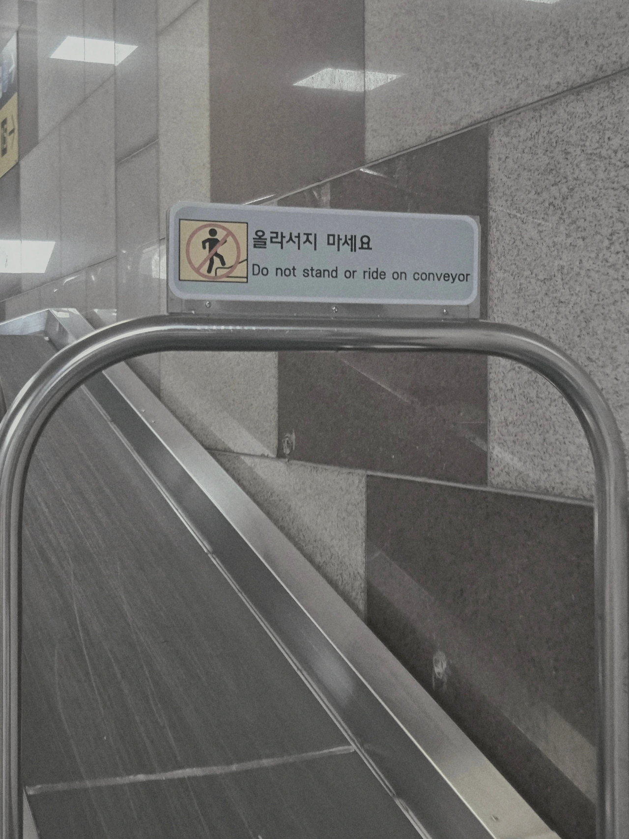 "올라서지 마세요." 지방에서 서울로 기차를 타고 올라오던 날, 경사로에 걸려있던 금지 표지판의 문구. 지친 발걸음을 옮기며 지나가던 와중에 경사로가 눈에 들어왔다. 계단에서 캐리어, 큰 배낭과 같은 짐을 옮기는 용도로 설치된 경사로. '저걸 타고 올라가면 편하겠다.'는 생각이 문득 스쳤는데 아니나 다를까 이를 금지하는 문구가 떡하니 걸려있었다. 이러한 상황이 웃겨서 그만 헛웃음이 피식하고 짧게 새어 나왔다.