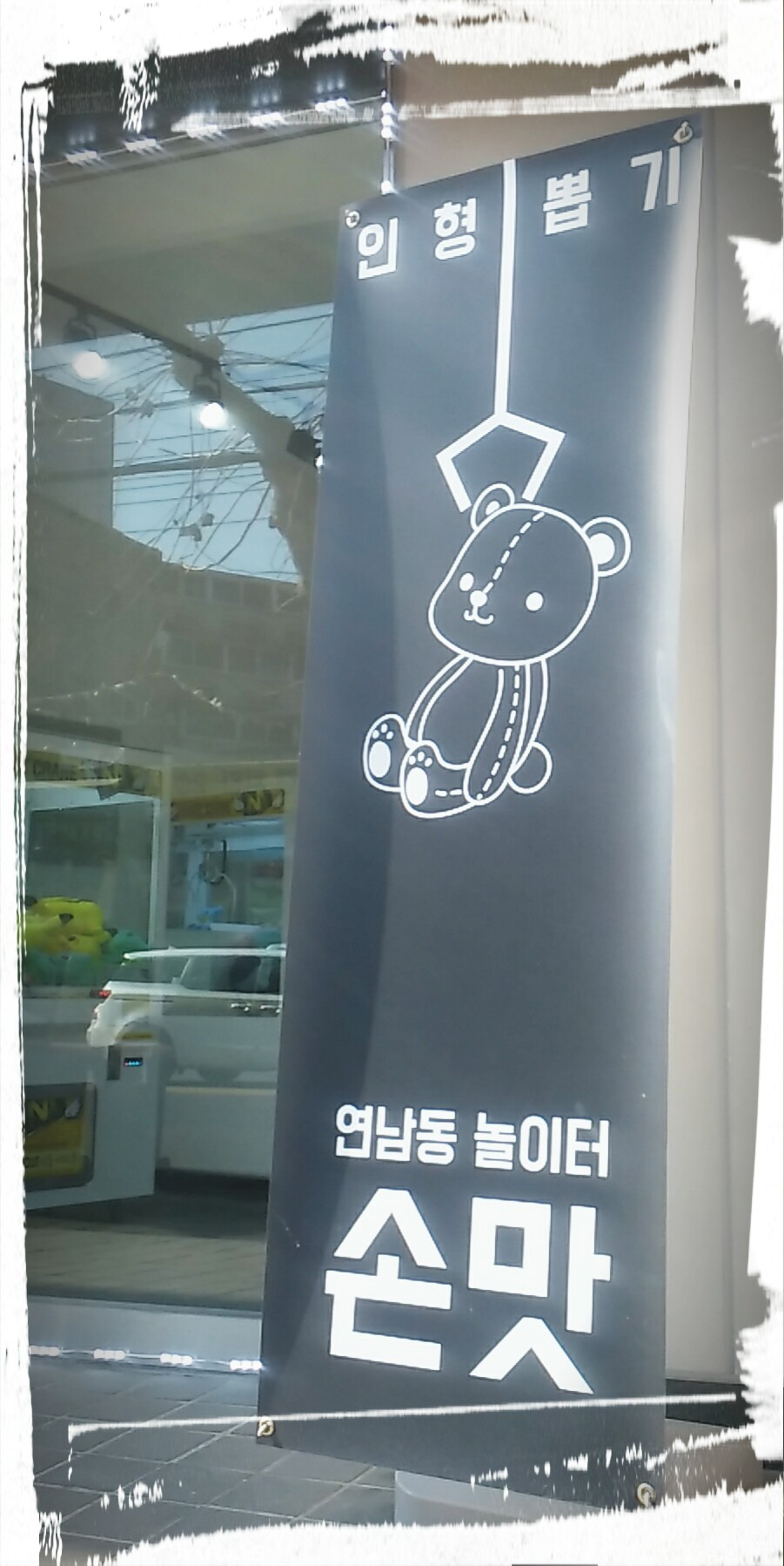 인형뽑기를 손맛이라는 표현으로 뽑기의 손맛을 잘 살린 상호명.