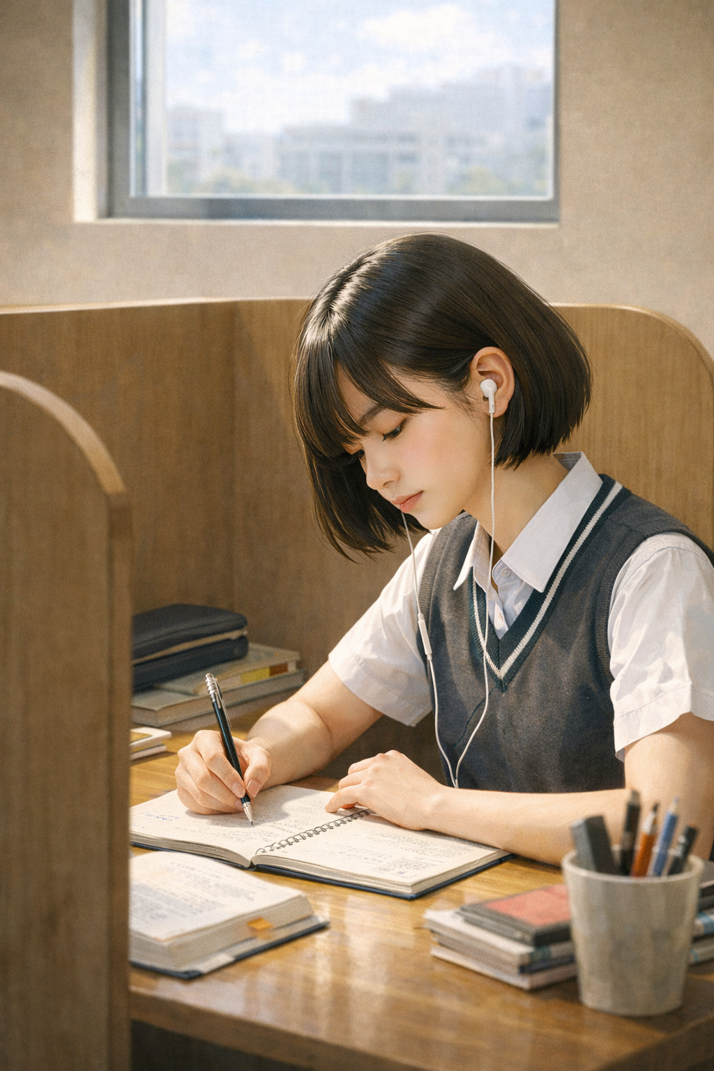 독서실에 도착해 창가 자리에 앉았다. 책을 펼치고, 연필을 쥐고, 음악을 계속 들었다.
