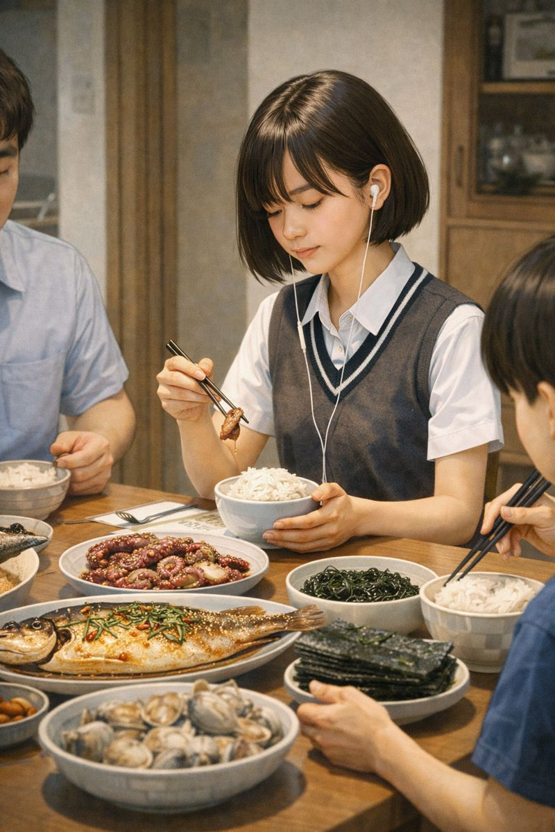 하지만 분명한 건 하나였다. 너는 보았다. 그리고 멈출 수는 없었다. 그저 그 장면을 안은 채, 아무 일도 없었다는 듯 다시 책상 앞에 앉아야 했다. 눈물은 나오지 않았다. 머릿속만 복잡해진 채, 손이 미세하게 떨렸고, 너는 아무것도 할 수 없었다. 이어폰을 다시 귀에 꽂았지만, 그날 이후로 음악은 더 이상 완벽한 방패막이 되어주지 못했다.