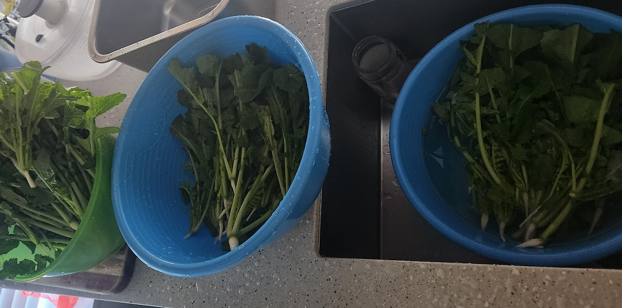 야리야리한 열무가 풋내 나지 않게 살살 세척하고 소금을 뿌려 재우려 할 때쯤 시간을 보니 오전 11시가 다 되어가고 있었다.
