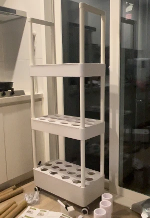 수경재배기가 도착하고 차근차근 뜯어봤다. 물을 담는 3단 받침과 기둥들, LED등과 수경용 화분 등이 있었다.