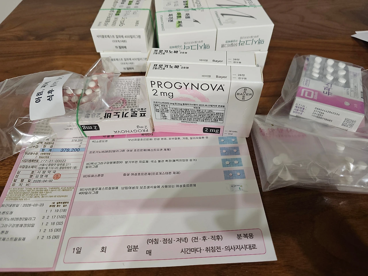 일주일 후로 이식 날이 잡히고 엉덩이 주사를 맞고 약은 전보다 2개 더 늘었어요. 소론도정과 아스피린인데 아스피린은 처방전 없이 따로 구매했어요. 두번째지만 약값은 익숙해지질 않네요.