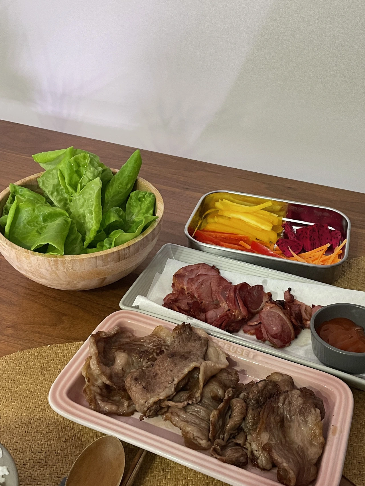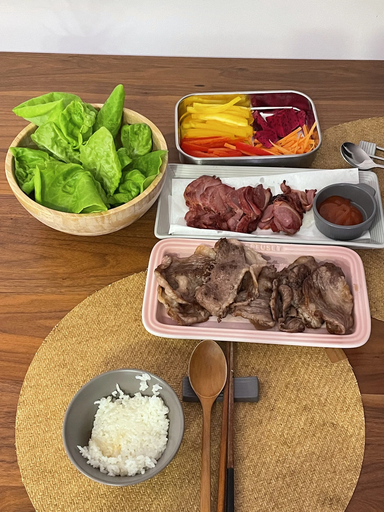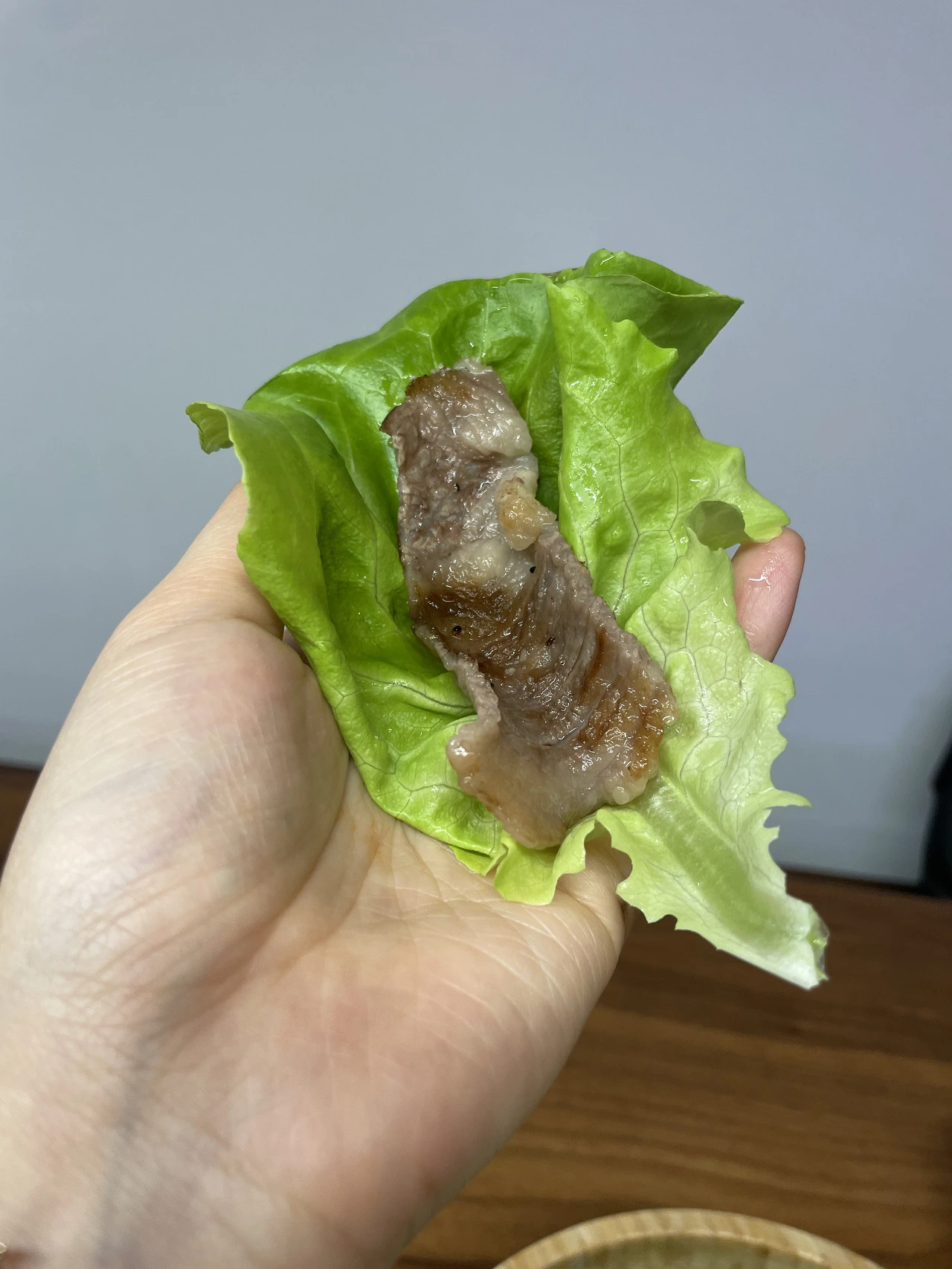 맛이 너무 궁금했던 나는 상추 한 잎을 집어 고기를 올리고 쌈을 싸서 바로 먹어보았다.