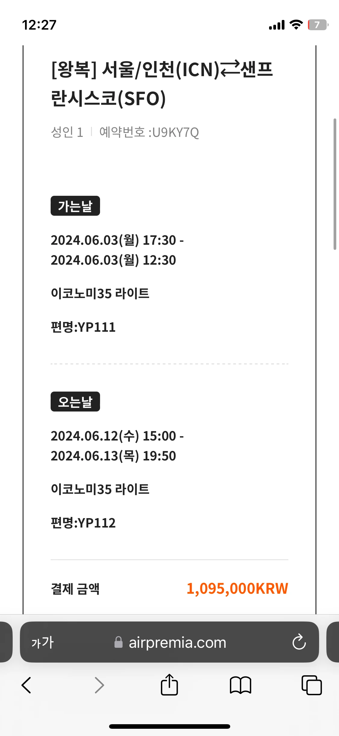 처음에는 에어프레미아로 예약을 했었다. 에어프레미아는 일전에 제주도 갈 때 타본 적이 있었는데 비행기가 새거고 좌석간 간격이 넓어서 좋았다. 그래도 저가항공으로 장거리는 우려되어 알아보니 밥 양이 적어서 간식을 꼭 챙겨 타라는 팁 외에는 괜찮았다는 후기들을 보고 안심하고 예약했다.
