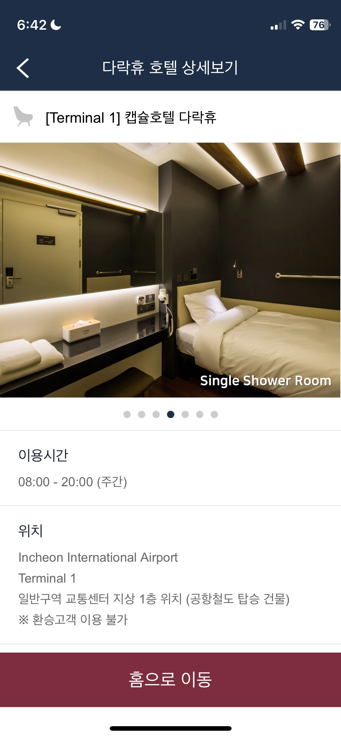 다락휴는 워커힐에서 운영하는 캡슐호텔인데, 신혼여행 갈 때 이용했을 때 꽤 편했다.