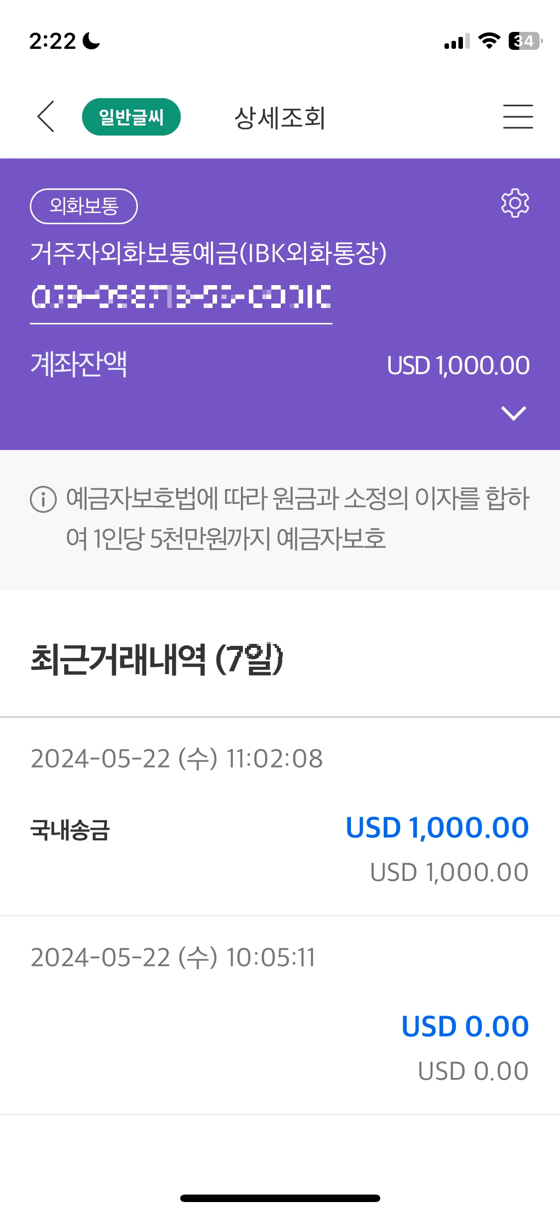 온라인으로도 계좌 가입이 가능해서 가입 후 달러를 이체했다.
