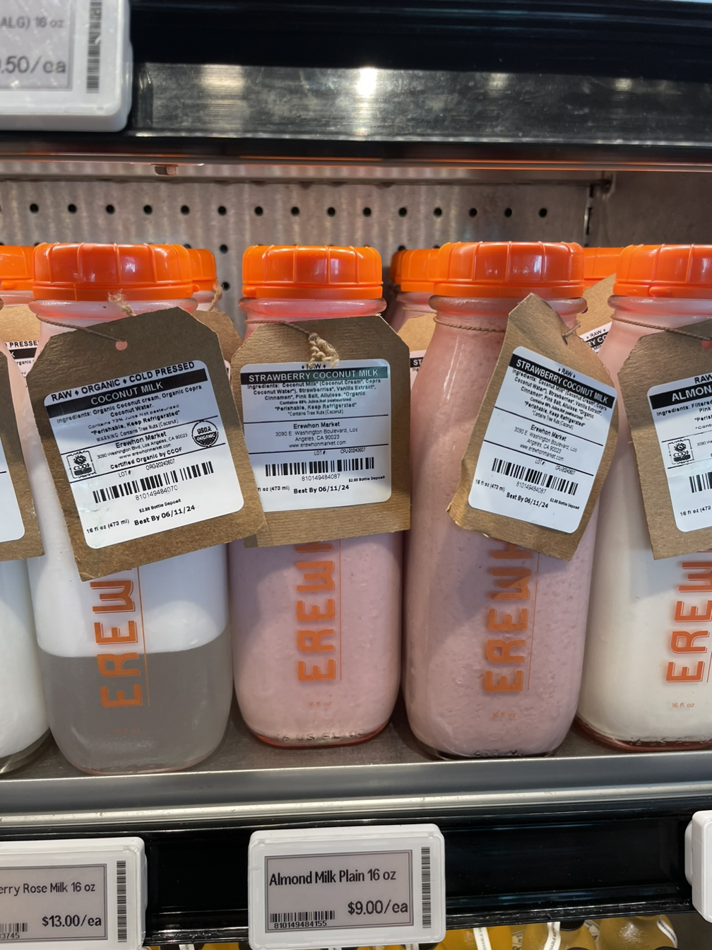 원래는 스무디를 먹어볼 생각이었는데, 그 돈을 지불할 가치가 있는지 의문이 들어 마트를 찬찬히 구경했다. 그러다가 에레혼에서 만든 주스코너를 발견했는데 사람들이 꽤 많이 그 주스를 가져가고 있었다. 나도 관심을 갖고 둘러봤고 Strawberry coconut 주스가 궁금해 하나 구입했다. 가격이 얼마인지 정확히 써있지 않았는데 구입을 하고 보니 16.5불로 한화로 23,189원이었다. (카드내역서 기준)