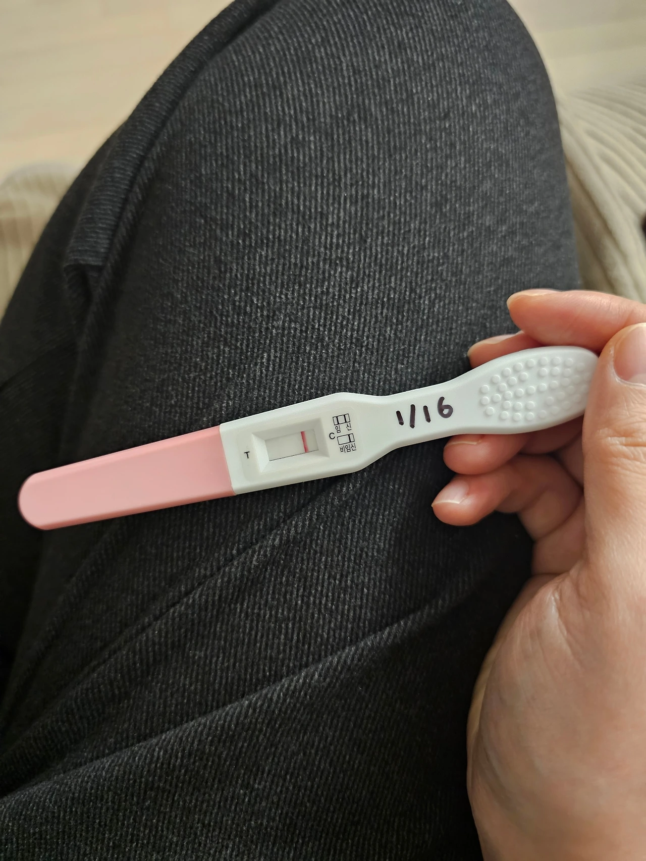 그러다 보니 자연스럽게 임신테스트기에 관심이 갔습니다. 시술 후 피검사까지 2주간 시간이 정말 천천히 가거든요. 하루빨리 확인해보고 싶은 마음이 커진거죠. 9일 차에 남편이 임신테스트기를 사 왔고 10일 차 아침이 밝자마자 테스트기를 해봤어요.