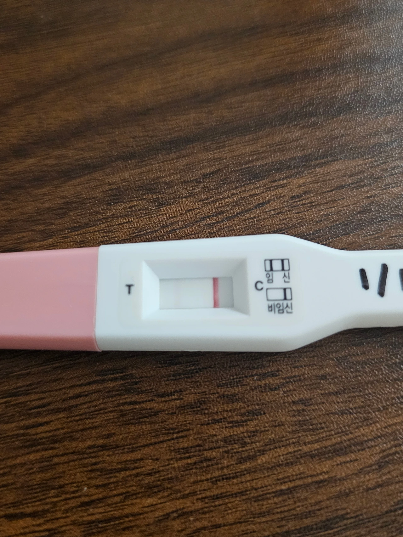남편이 간 뒤 몇 번이나 더 임신테스트기를 살펴보았습니다. 밝은 빛으로 가서 확인하기도 하고 핸드폰 카메라로 확대를 해서 더 자세히 보기도 했지만 아~주 희미한 선은 짙어질 기미가 없었습니다. 지나가던 누군가 "이거 한 줄인데?"라고 해도 딱히 할 말 없는 그런 희미한 선이요.