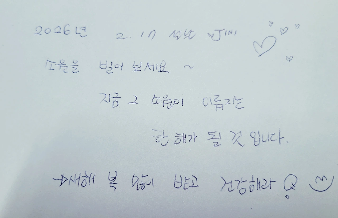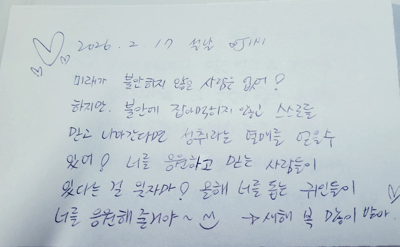 아이들에게, 그리고 나 자신에게 건네는 이 작은 메모들이 올 한 해를 버티게 할 힘이 되어줄 거라 믿으며 주문처럼 적어 곱게 말아 놓았다.