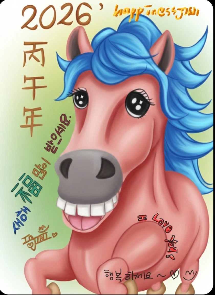 그러고 나서는 매년 올 해의 띠를 그려본다. 붉은 말띠의 해! 난 장난스럽게 이를 드러내고 푸르르~거리며 도약하는 귀여운 아가씨말을 그렸다. 그리고 지인들께 새해 인사와 함께 말 그림을 보낸다. 나의 사랑과 행복을 전하는 진심을 담아서....