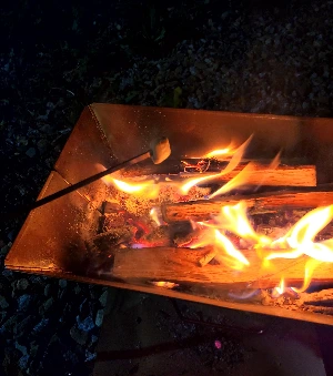 그 뒤로도 내가 " 고기를 구우면서 장작불이 뜨거우니까 "집게가 조금만 길면 좋겠다." 하면, "있어! 잠깐!" 하며 긴 집게를 가져왔다.