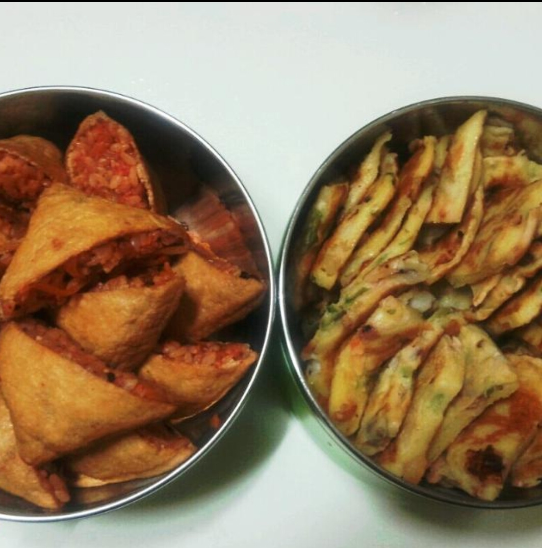어쩌다 만들어 본 유부로 싼 김치볶음밥!