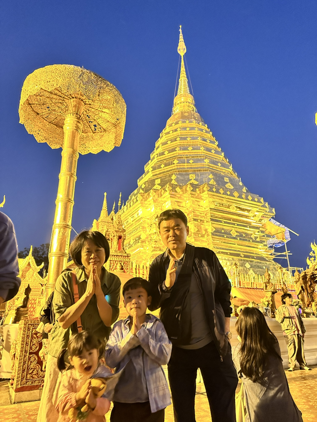 여행사 투어도 처음으로 신청했다. 평소에는 복잡한 유명 관광지에 가는 가이드 투어를 선호하지 않지만, 3대가 함께할 때는 종종 단독 투어를 활용한다. 다른 사람들과 섞이지 않고 우리끼리 다닐 수 있기 때문이다. 한국어를 굉장히 잘하는 젊은 태국인 가이드를 만나 왓파랏과 도이수텝 야경 투어를 성공적으로 다녀왔다.