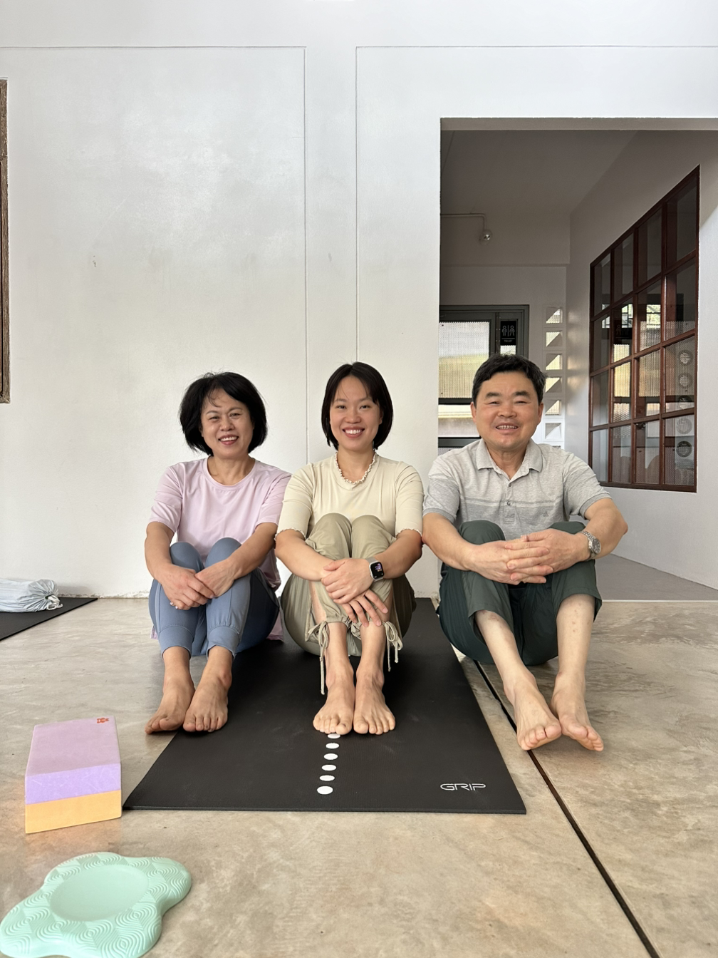 요가에 푹 빠져 있는 나는 부모님도 한 번 해보시면 좋겠다는 생각을 하고 있었다. 해외에서 딸과 함께하는 요가, 지금 생각해도 낭만이다. 마침 숙소 바로 뒤에 요가원이 있어 문의했는데, 딱 우리 세 명을 위한 원데이 클래스를 개설해줬다. 기존에 있는 수련에 참여하려니 요가 경험이 전무한 60대 부모님이 참여해도 괜찮을지 감이 잡히지 않아 망설이고 있었는데, 우리만의 클래스를 열어 준다니 이 얼마나 친절한 치앙마이 요가원인가. 남편도 함께하면 더 좋았겠지만 본인이 아이들과 있을 테니 다녀오라고 배려해 준 덕분에, 친정부모님을 모시고 모닝 요가도 해볼 수 있었다. 예상보다 아사나를 하나하나 차분하게 완성하는 엄마에게 놀랐고, 온몸이 뻐근하고 마음처럼 되지 않았을 텐데 포기하지 않고 열심히 따라 하시던 아빠의 모습도 인상 깊었다. 우리의 수준에 맞게 수업을 이끌어 준 밝은 표정의 남자 요가 선생님도 기억에 남는다.
