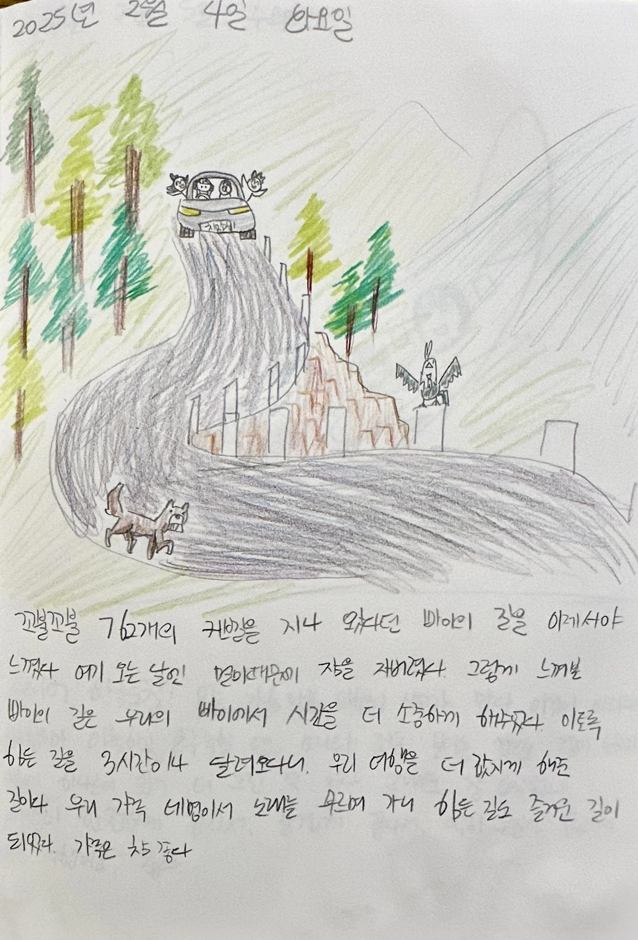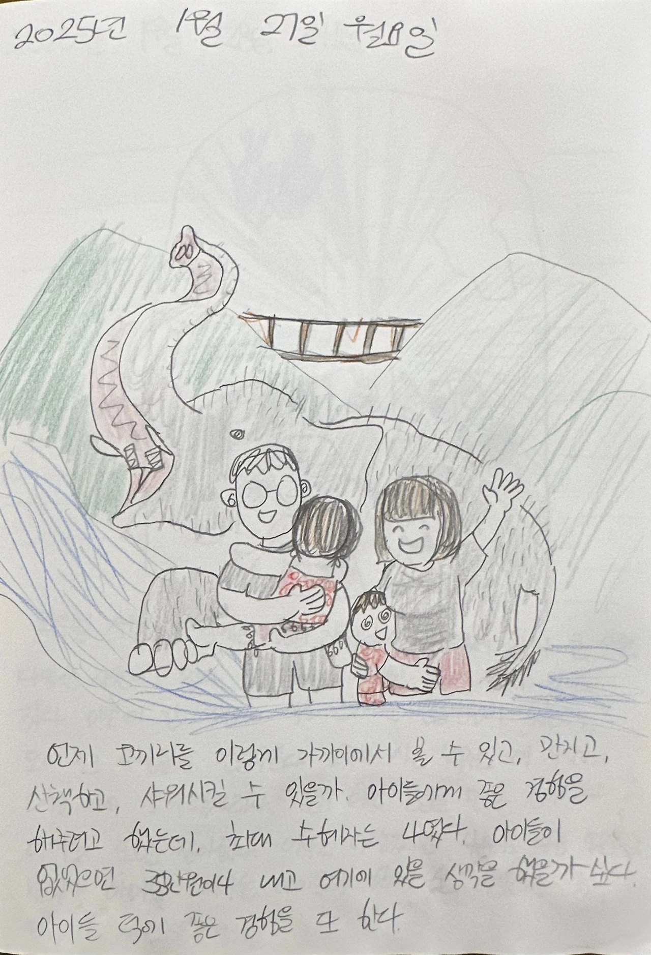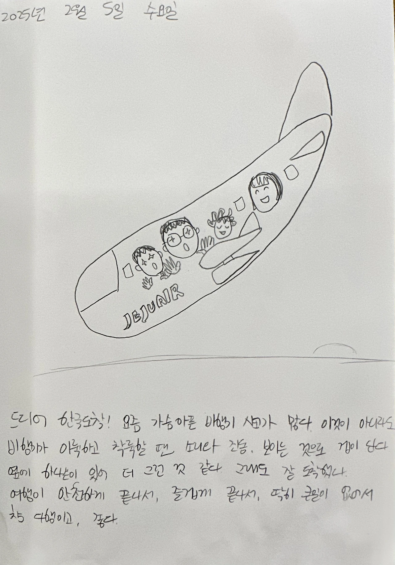 * 에필로그에, 여행 중 루틴으로 가져갔던 그림일기 몇 개를 첨부합니다. 저는 그 시간에 주로 글을 썼지만 남편과 아이들은 그림을 그렸거든요. 여행을 마치고 거의 9개월이 지나 아이들의 그림일기를 펼쳐보고 깜짝 놀랐어요. 9개월 동안 아이들의 그림 실력이 훌쩍 늘었다는 걸 깨달았거든요! 자라나는 아이들을 관찰하는 건 이렇게나 흥미롭네요 :)