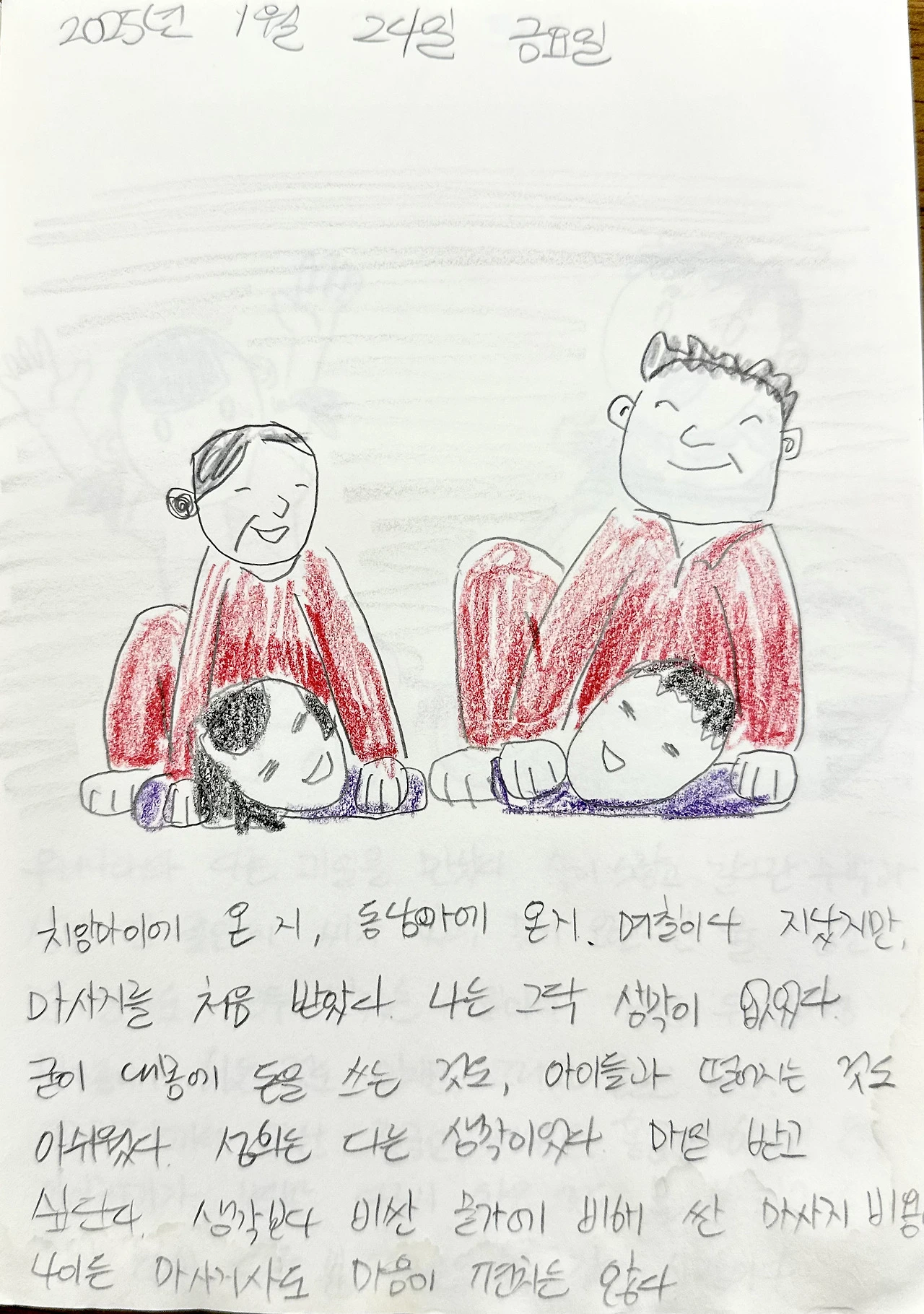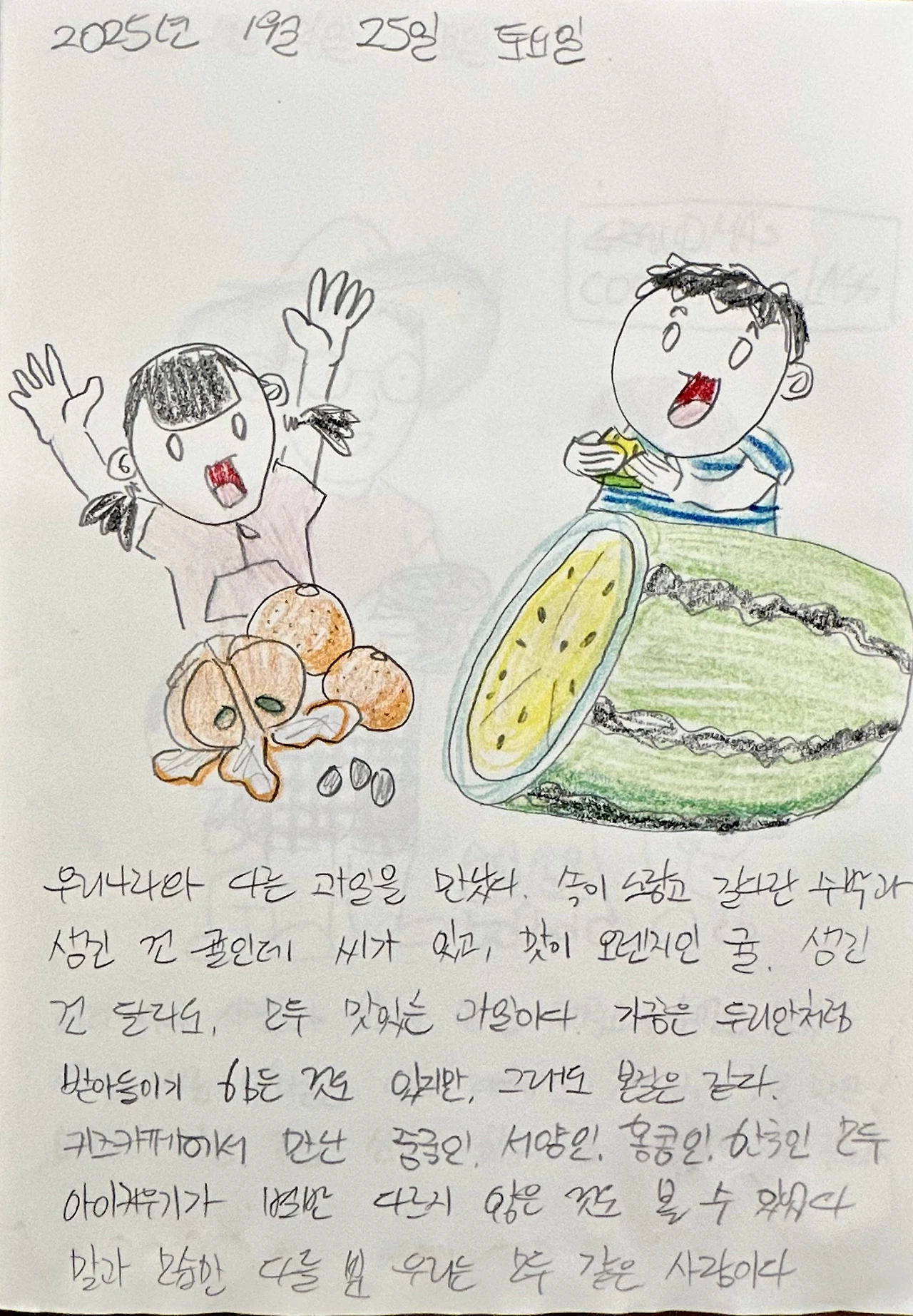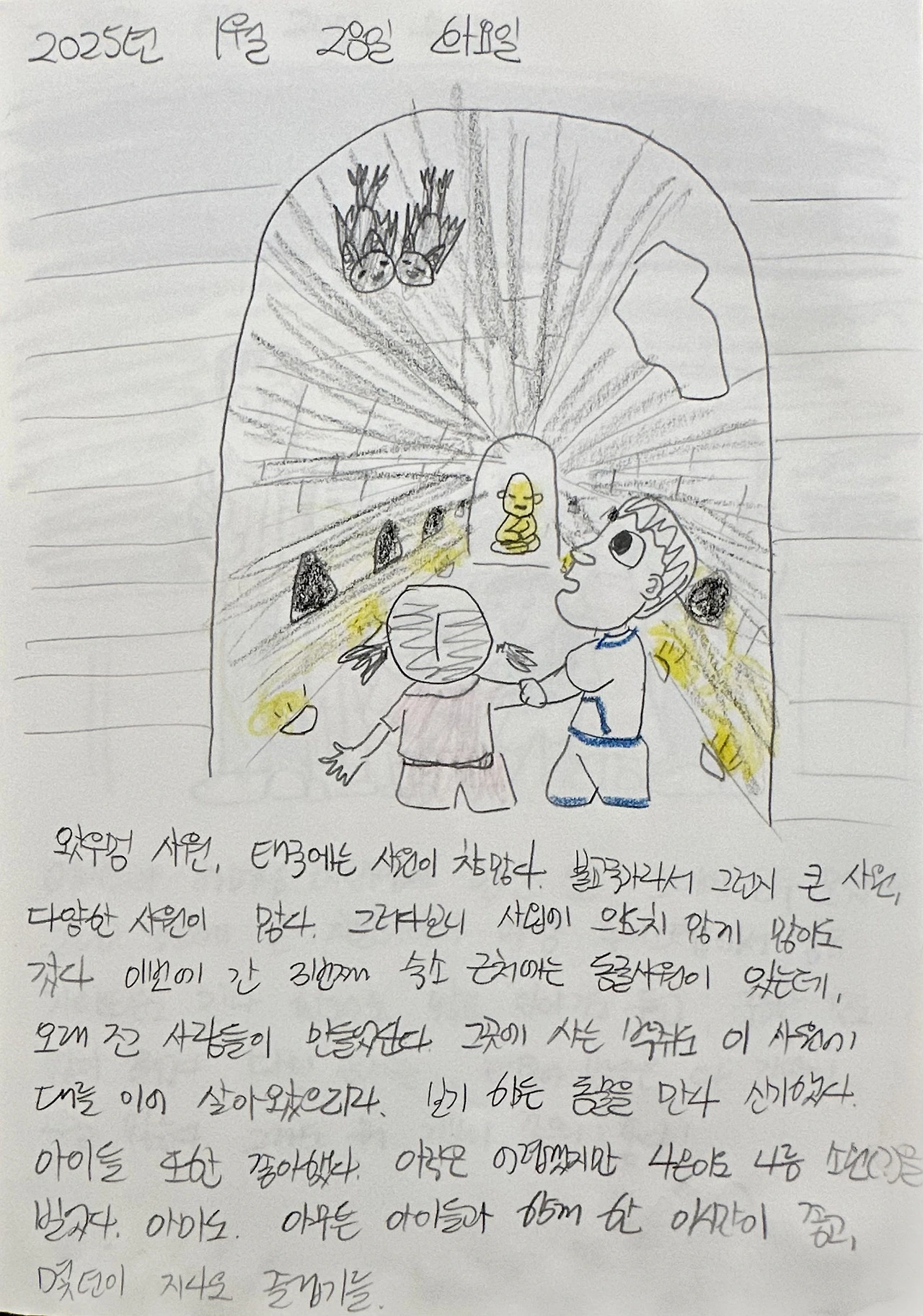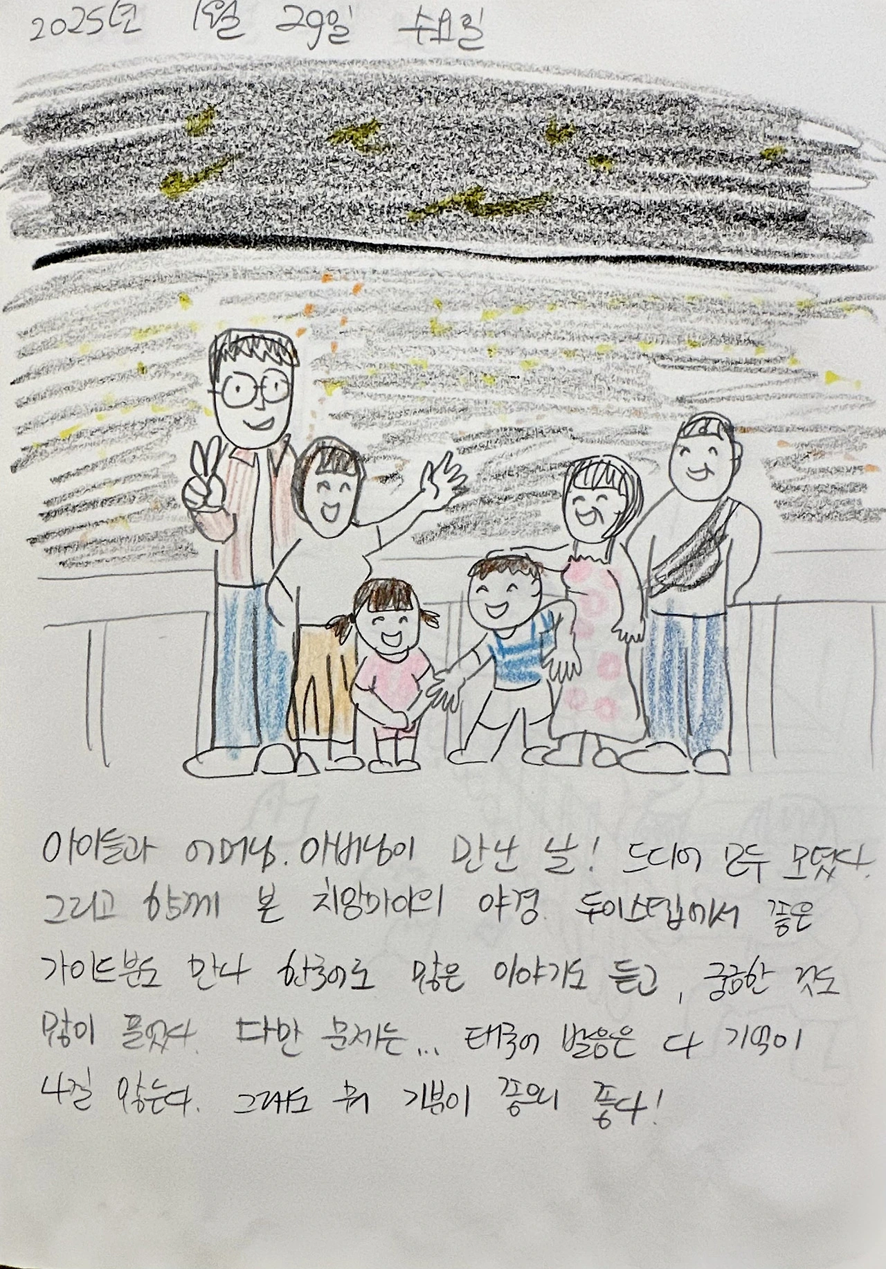 * 에필로그에, 여행 중 루틴으로 가져갔던 그림일기 몇 개를 첨부합니다. 저는 그 시간에 주로 글을 썼지만 남편과 아이들은 그림을 그렸거든요. 여행을 마치고 거의 9개월이 지나 아이들의 그림일기를 펼쳐보고 깜짝 놀랐어요. 9개월 동안 아이들의 그림 실력이 훌쩍 늘었다는 걸 깨달았거든요! 자라나는 아이들을 관찰하는 건 이렇게나 흥미롭네요 :)