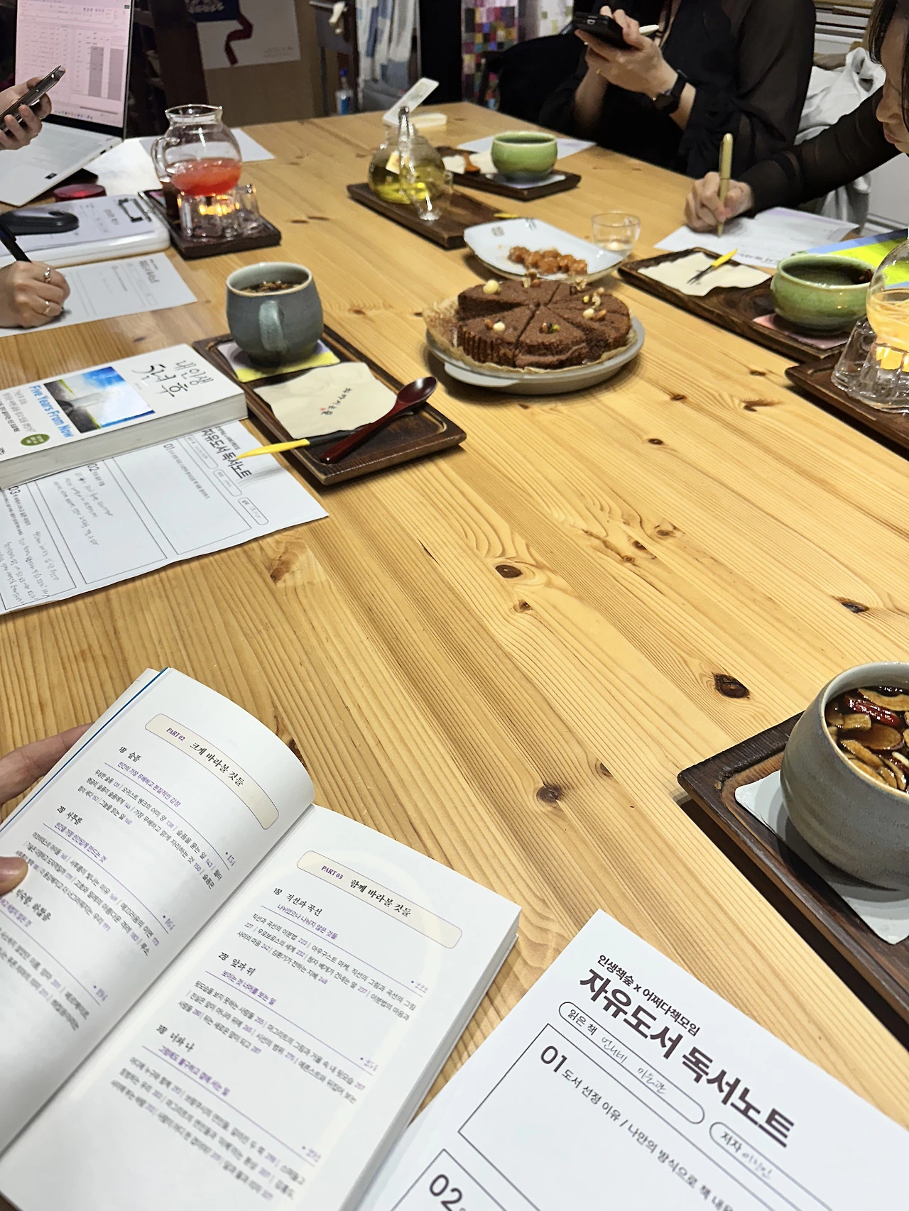 규방공예 장인이 운영하는 고즈넉한 찻집에 6명이 책을 들고 모였다. 각자 읽고 싶었던 책을 읽고 만나 이야기를 나누는 독서모임 자리였고 감사하게도 내가 모임을 진행하게 되었다. 6명 중 세 분은 처음 뵙는 분들이라 만남과 동시에 나의 낯가림 레이더망이 가동되었지만. 7년간의 독서모임 진행 경험을 살려 전혀 그렇지 않은 척을 하며 나름 자연스럽게 모임을 시작할 수 있었다.