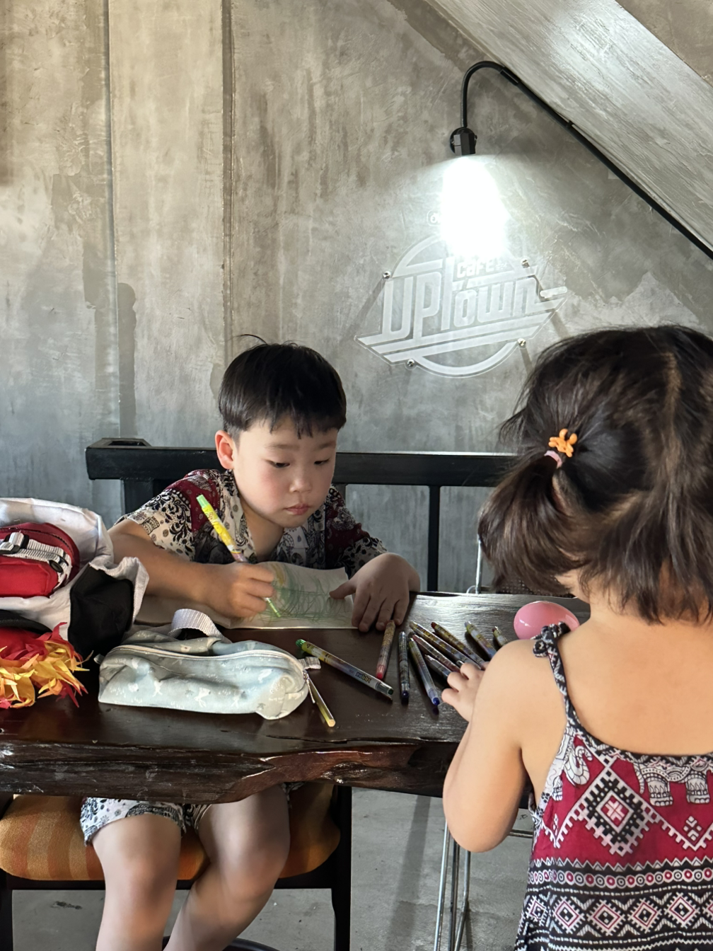 치앙마이에서는 오후 4~5시쯤이면 일정을 마무리하고 근처 아무 카페나 들어갔다. 카페 테이블에 둘러앉아 『발도르프 한글 첫걸음』 책을 꺼내, 그림을 그리고 노래를 부르고 시를 외웠다. 아이들에게는 어땠을지 모르겠지만, 나에겐 그 장면들이 특별하게 남아 있다.