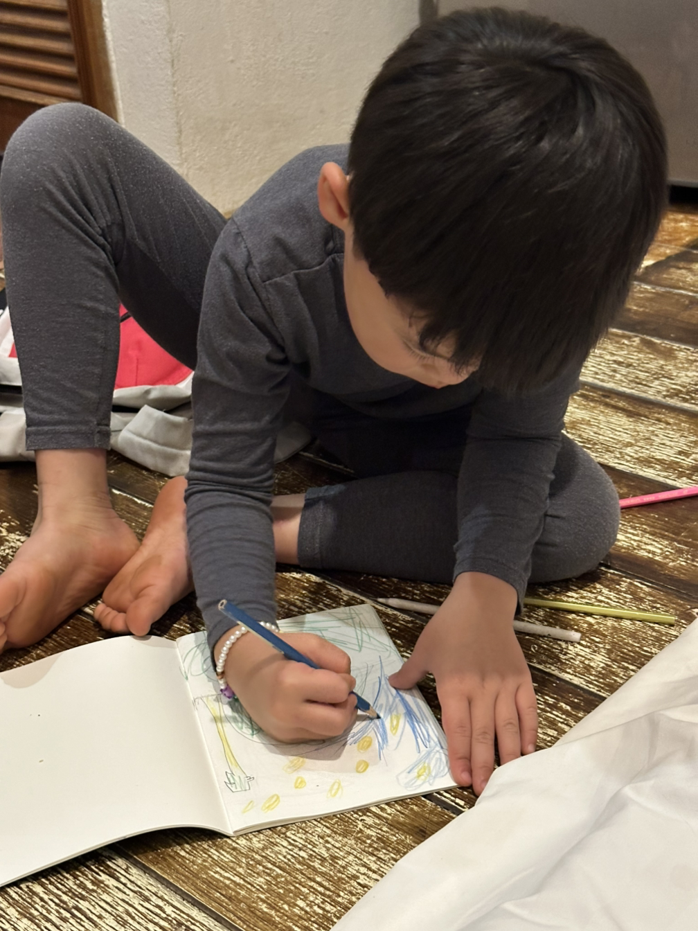 그랬는데 첫째가 6살 끝무렵부터 한글을 배우고 싶다고 한 것이다. 조금 더 천천히 시작하길 바랐지만, 아이의 의지를 외면할 수 없어서 이리저리 알아보다가 『발도르프 한글 첫걸음』이라는 책을 발견했고, 겨울방학을 맞이한 첫째와 그 책을 가지고 나름 발도르프식으로 한글 공부를 차근차근 시작했다. 그 옆에서 5살밖에 안 된 둘째도 같이 하고 싶어 해서 곤란했지만, 막을 수 없어서 대충 함께하고 있던 중이었다. 그래서 그 책과 아이들이 직접 그림 그리고 한글을 써보는 각자의 노트를 여행 가방에 챙겼다.