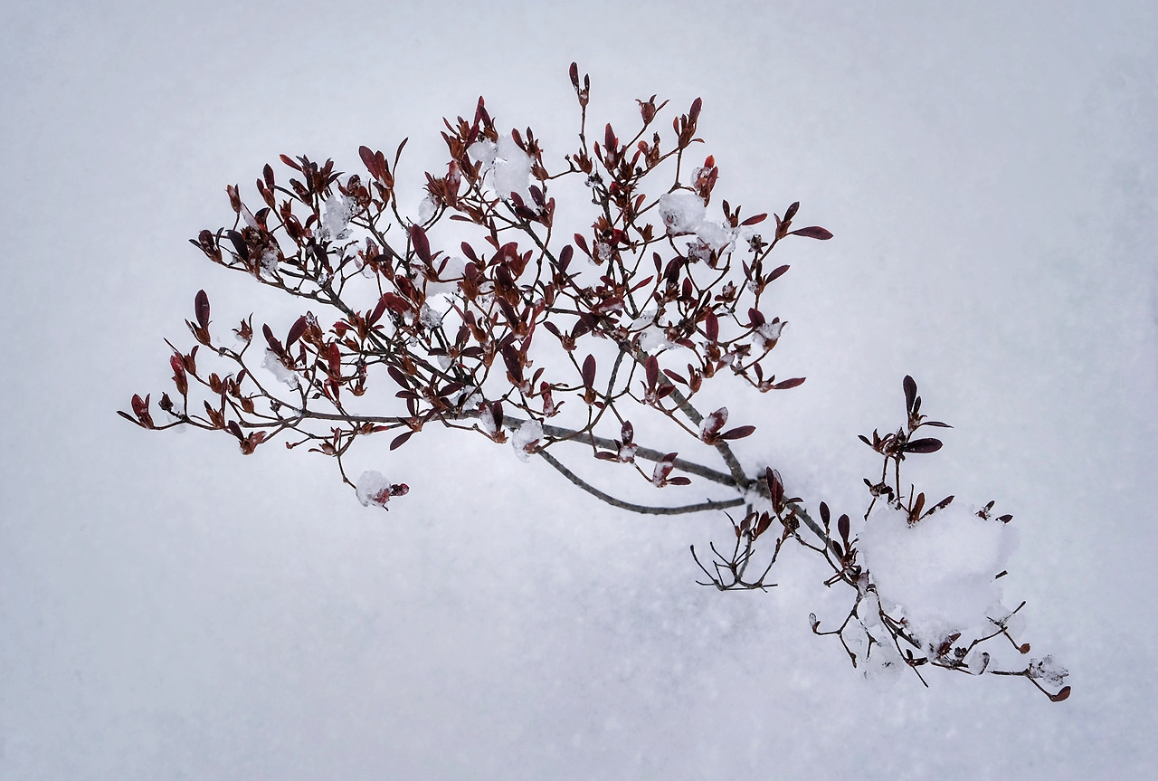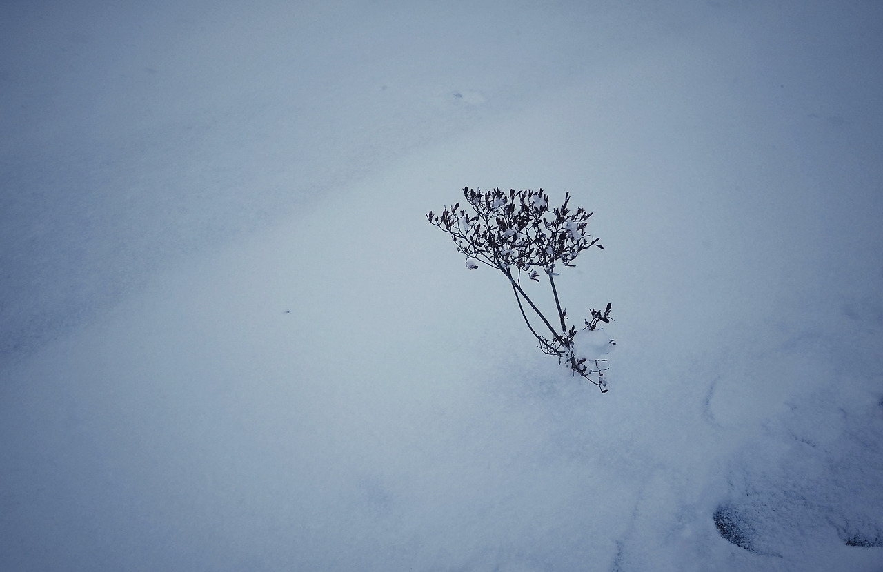 마른 철쭉 위에도 눈이 내렸습니다