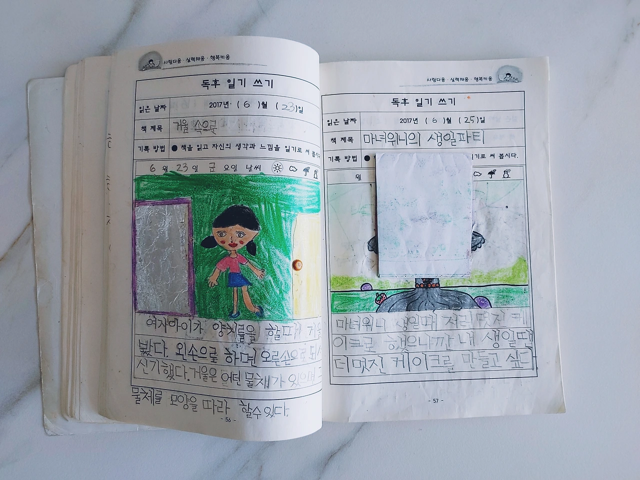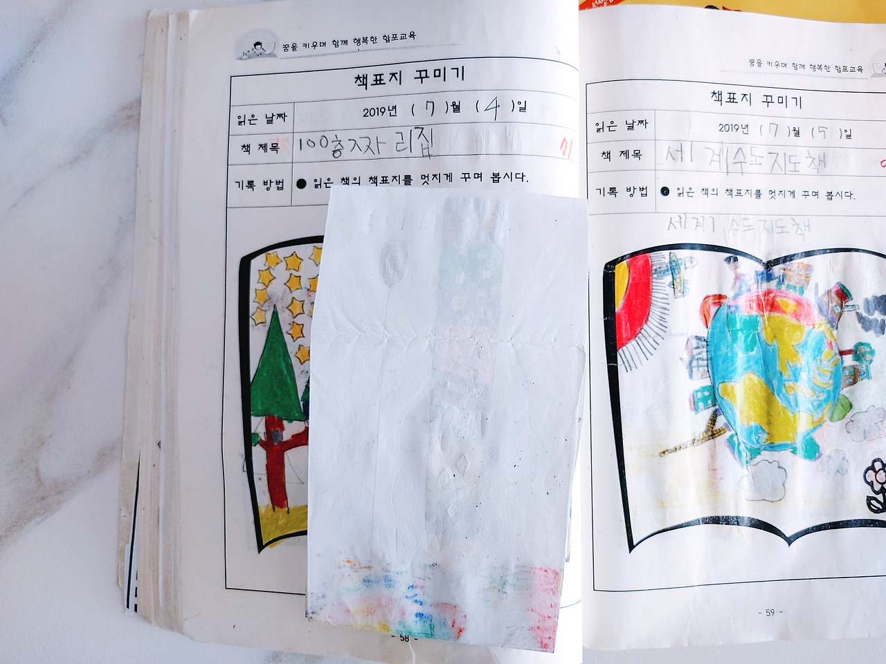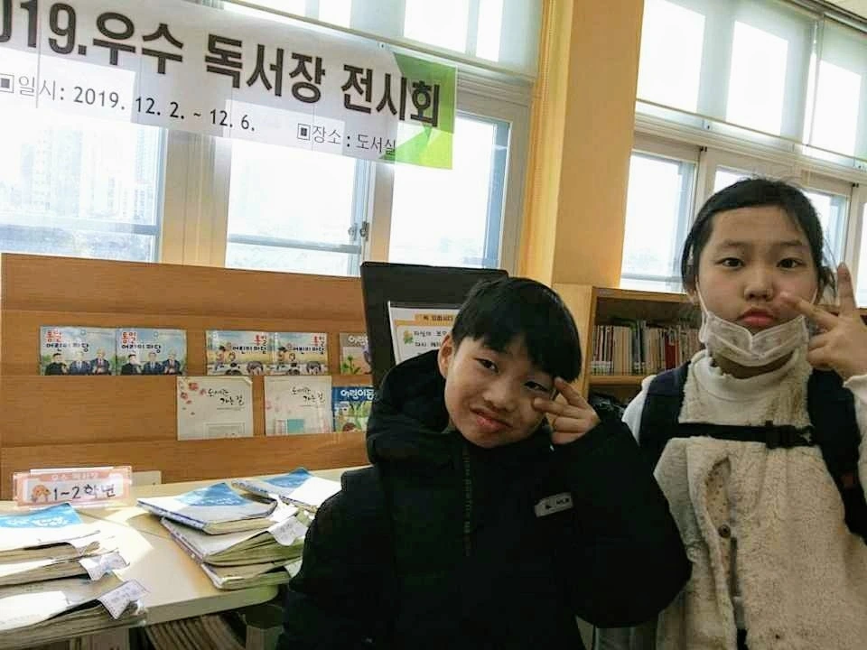 두 아이가 우수 독서장으로 뽑혀 전시된 날