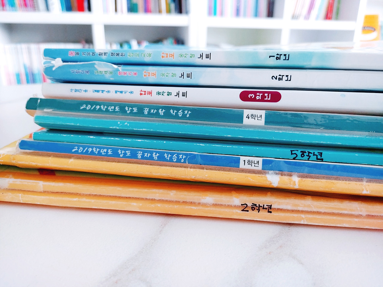 책장에 꽂힌 아이들의 독서기록장은 가끔씩 꺼내어 추억을 나누기도 한다.