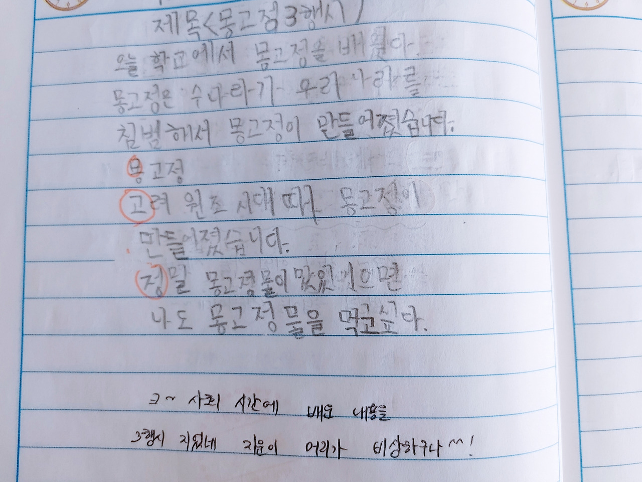 일기 주제 역시 자신이 알고 있는 역사에 관한 이야기이거나 영화를 관람한 이야기가 많았으며 삼행시 짓기도 자주 활용하였다.