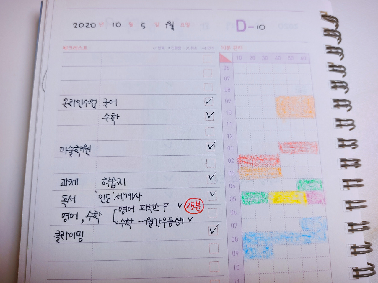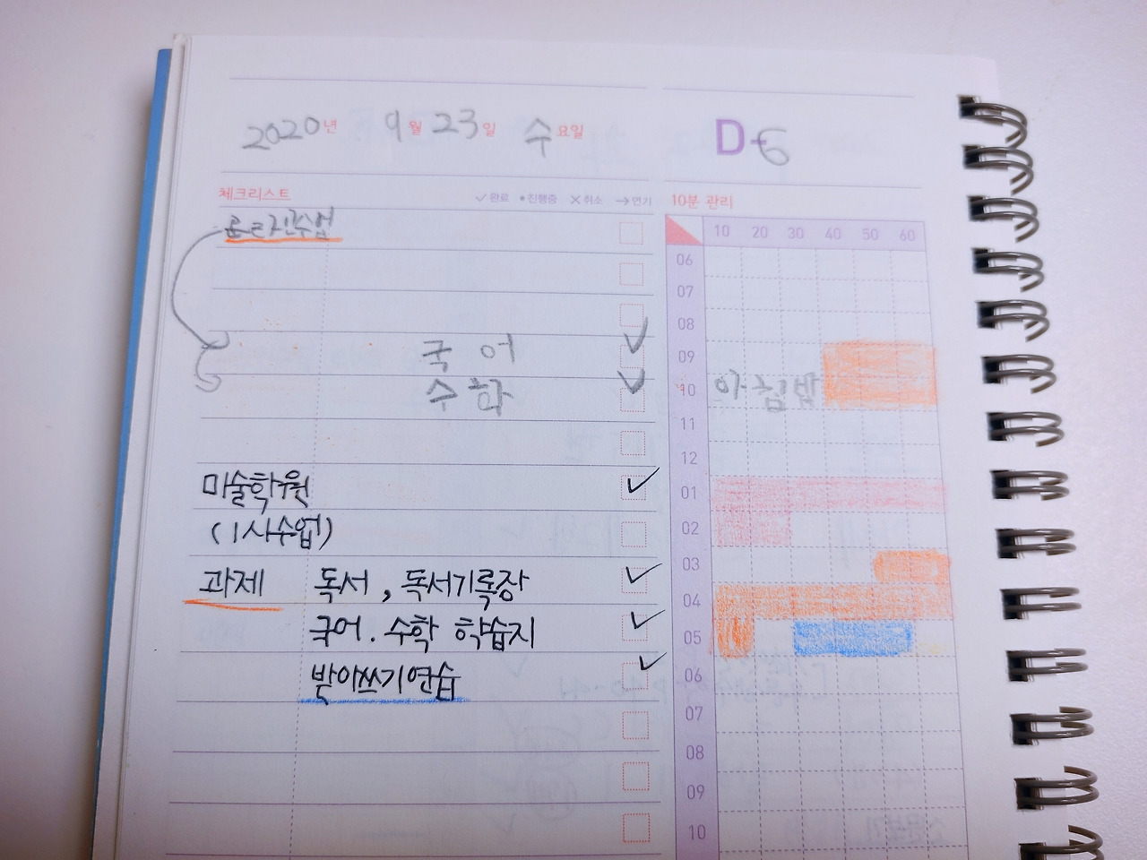 A. 초등 저학년 때까지는 엄마가 아이와 함께 해야 할 리스트를 정해 본다. 그중 가장 먼저 해야 하는 우선순위를 정해 보는 연습을 해본다면 도움이 될 것이다. 습관이 되면 고학년 때에는 아이가 스스로 학습량을 계획하게 된다.