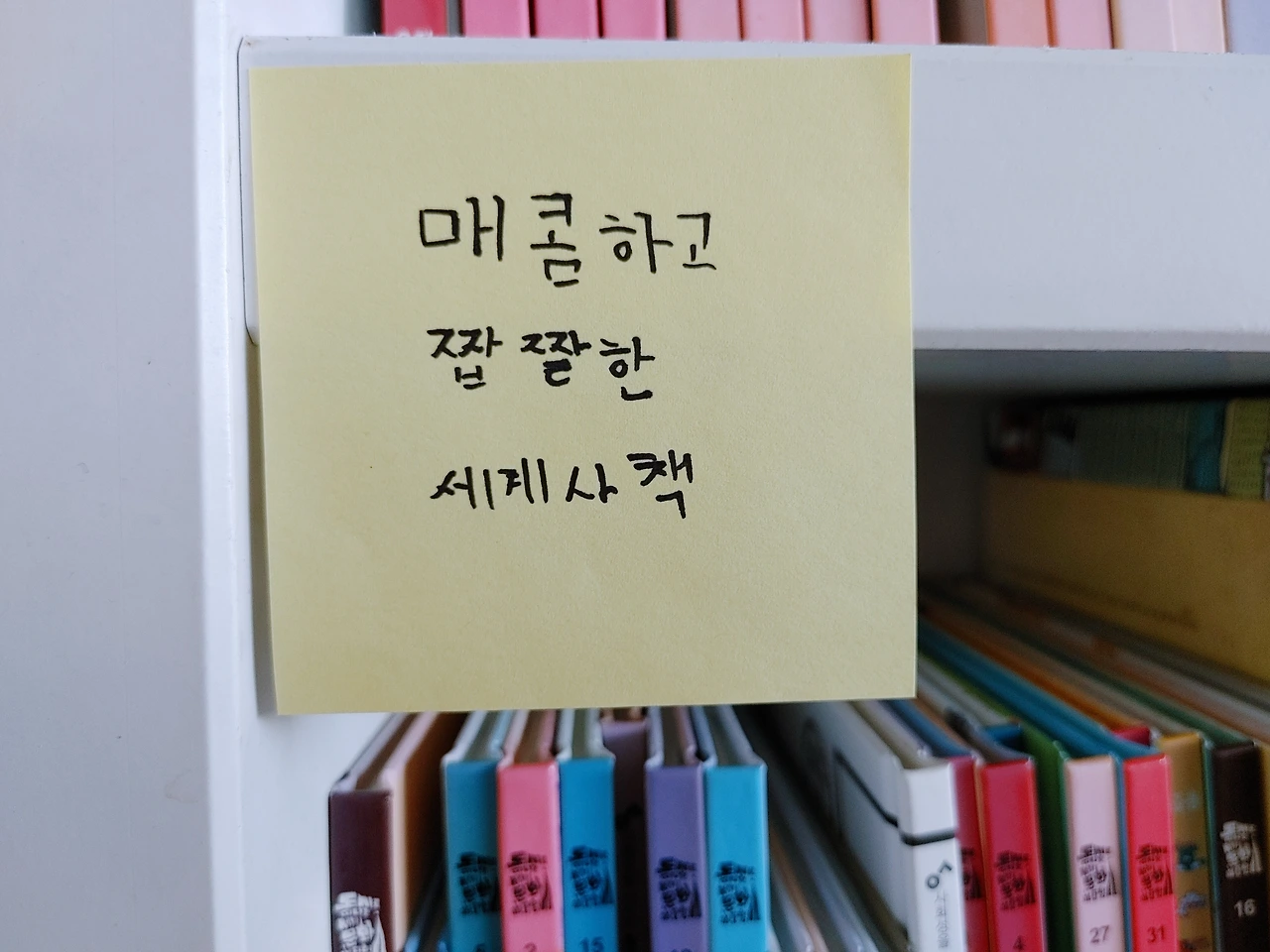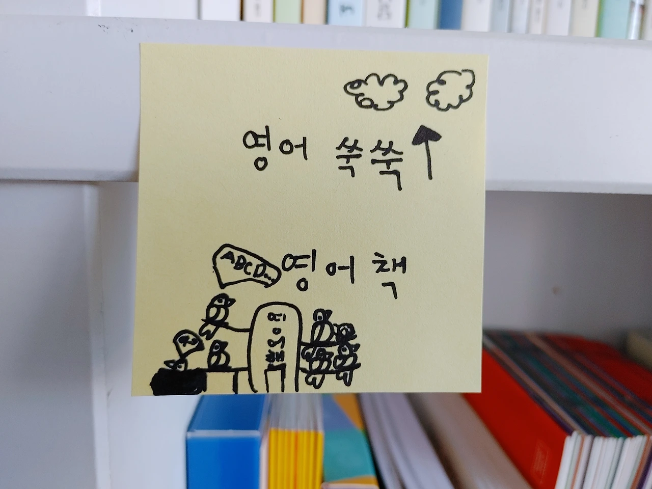 “좋다! 그럼 포스트잍에 써서 책장에 붙여보자.”