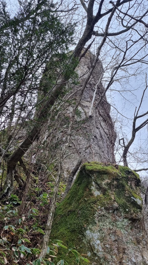 이제부터는 급경사진 내리막 길이다. 암자로 내려가는 산책로 옆에는 촛대 모양의 큰 바위 두 개가 있다. 깊은 산속 암자 입구에 자리 잡고 있어, 그 자체만으로도 영험함이 느껴진다.