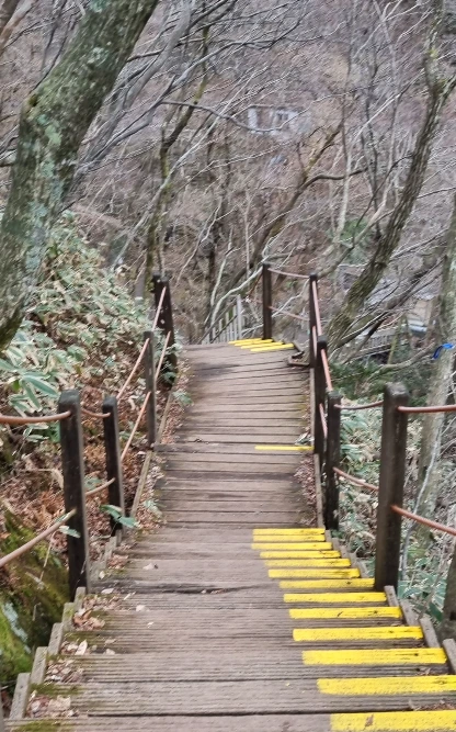 어느 정도 올라가다 보면 등산로 양쪽으로 깊은 계곡이 나온다. 일부 구간은 낭떠러지이다. 그래서 등산로가 완만한 경사임에도 고바위를 지나고 있다는 느낌을 준다. 좁은 산책로에서 양쪽 절벽을 마주하면 때론 다리가 떨리기도 한다. 고소공포증이라도 있다면 무서워 발을 떼지 못할 수도 있다.